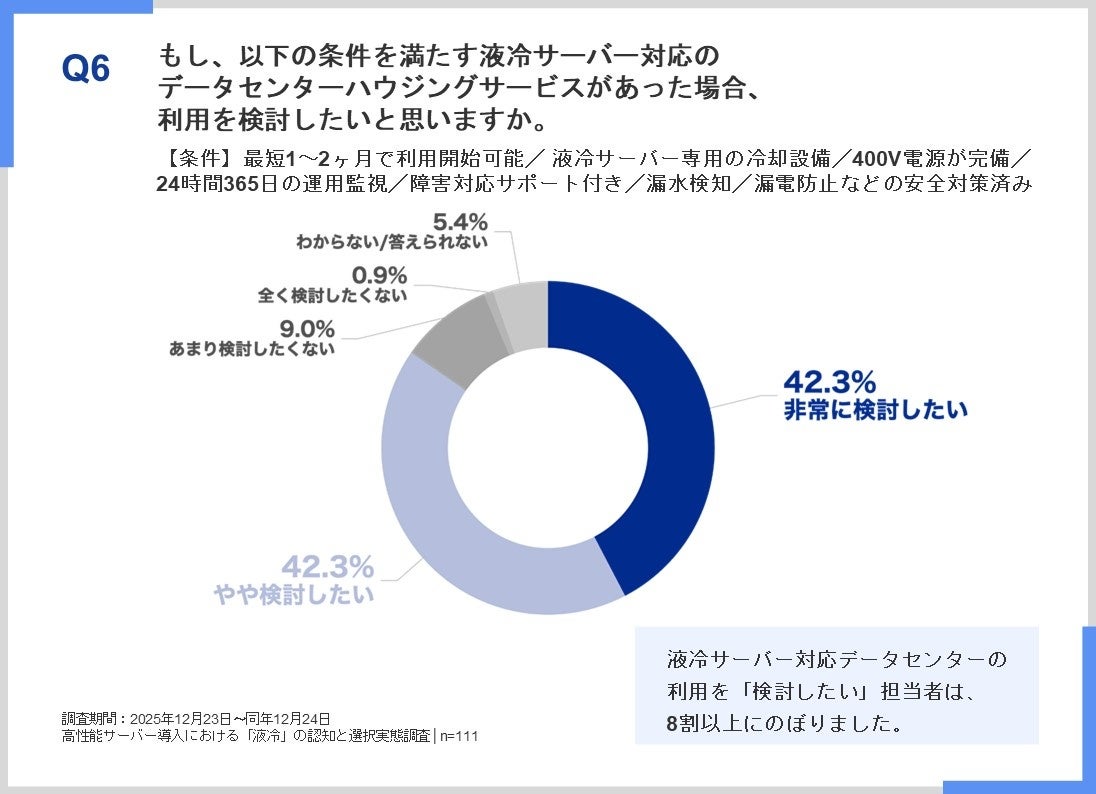 Q6. もし、以下の条件を満たす液冷サーバー対応のデータセンターハウジングサービスがあった場合、利用を検討したいと思いますか。(n=111)
