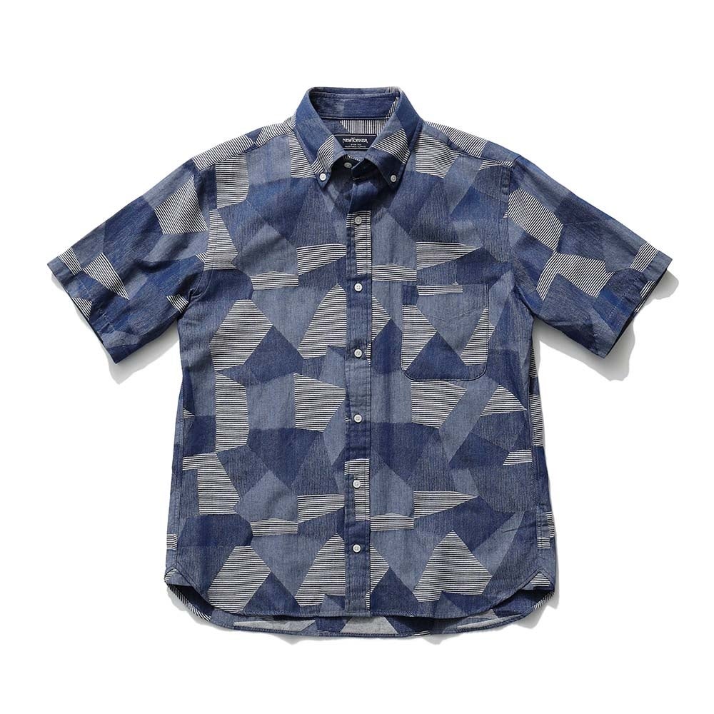 - ジャカードダンガリー 半袖ショートボタンダウンシャツ