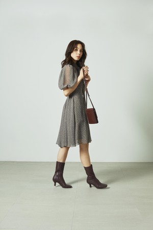 【レディなディティールとシックなタフタ生地で特別感を纏う、ボリュームスリーブワンピース】