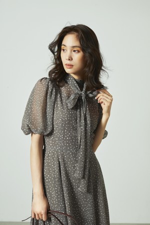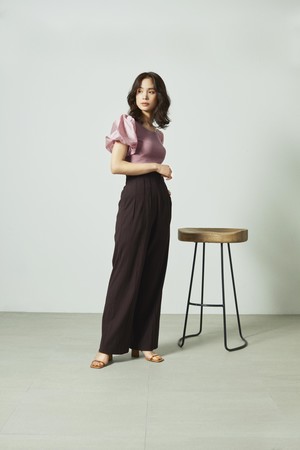 ふっくらとした大胆なパフスリーブでボリュームを持たせた分、身頃はすっきりとしたナローシルエットでバランス良くデザインしました。小顔効果を引き立てるスクエアネックに、華奢なリボンを飾ったバックオープンデザインが大人の色香をプラス。女性らしさとシックなディティールを絶妙に表現した華やかな1枚です。