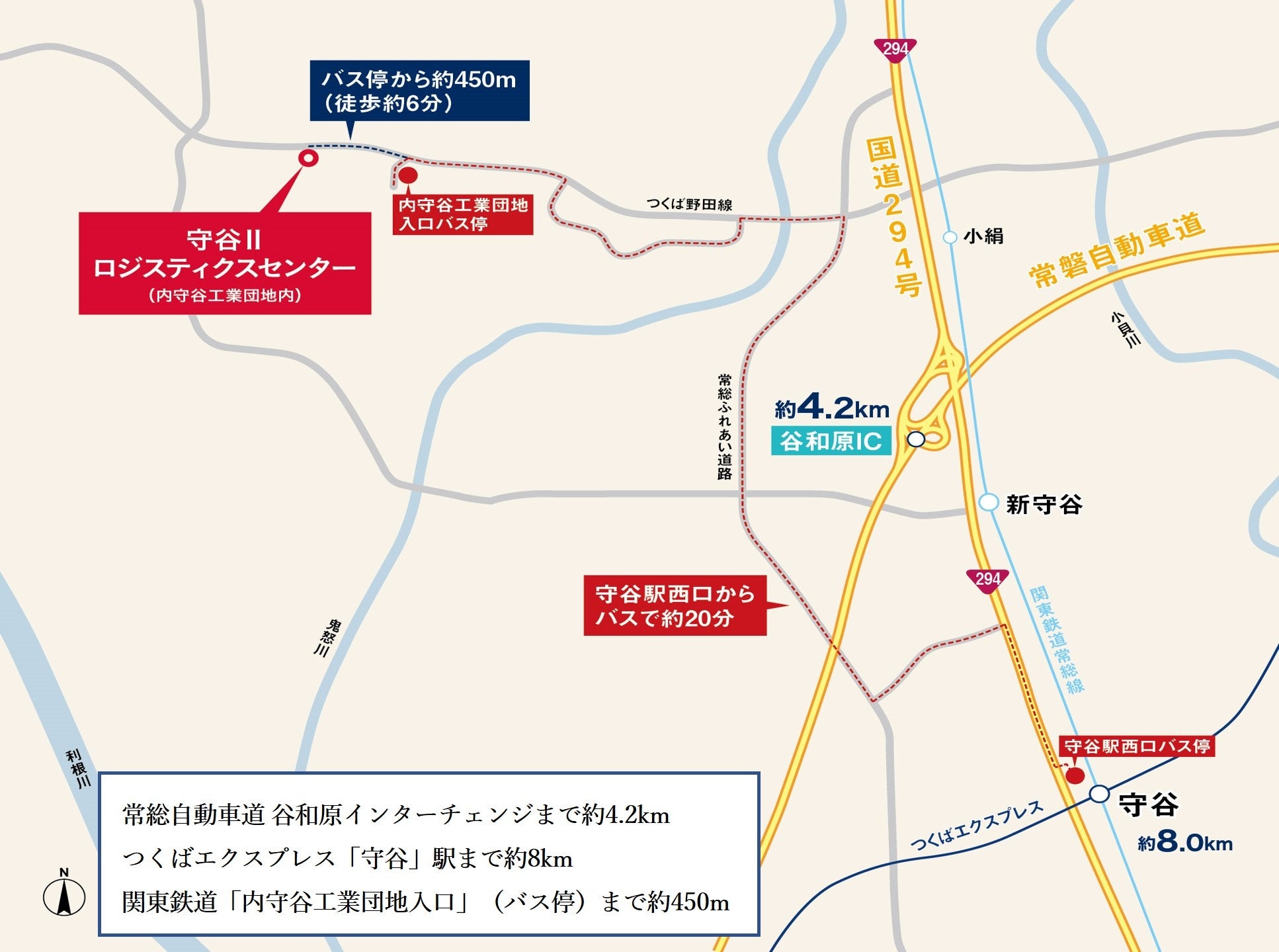 関東鉄道「内守谷工業団地入口」(バス停)まで約450m