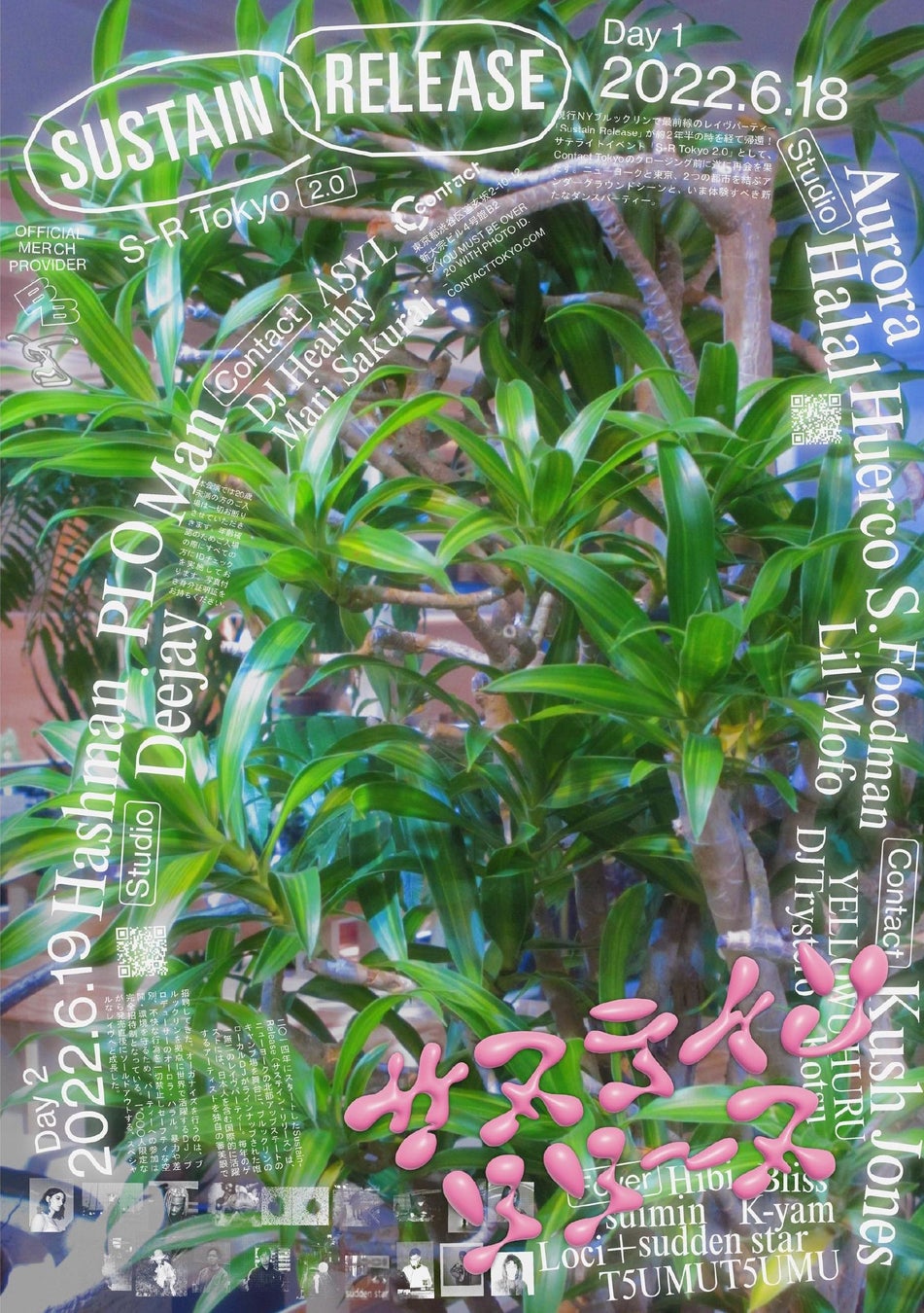Contactフロアでは、S-R Tokyoシリーズの陰の立役者、Aurora HalalやDJ Pythonの初来日公演などNYと東京のシーンを密に繋げてきたDJ Healthyがオープニングを務め、ディープなグルーヴを丁寧なミックスで紡ぐASYLが二番手で登場。そして、Sustain Releaseとも共通するコンセプト”すべての人が安心してオープンに楽しめる空間”を掲げ、あらゆるセクシャリティを歓迎するレイヴSLICK主宰、Mari Sakuraiがクロージングを担当する。