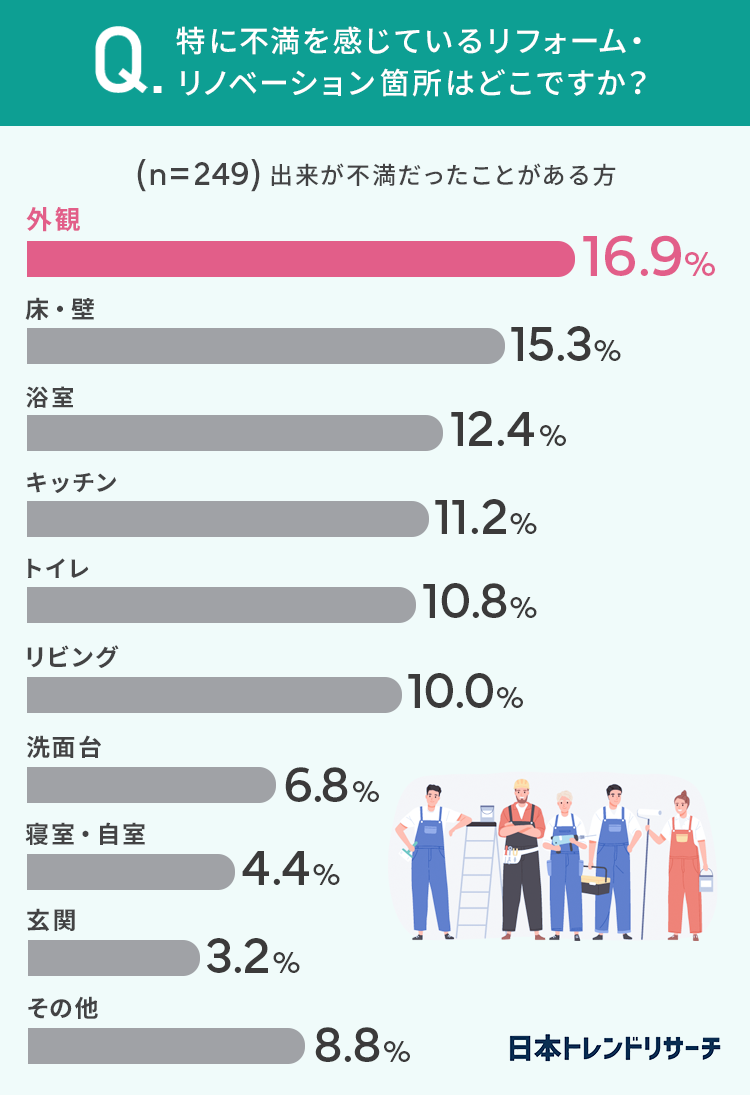 ■特に不満を感じているリフォーム・リノベーション箇所は?16.9%が「外観」