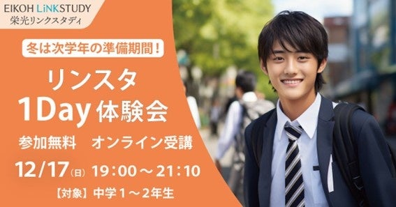 リンスタ1Day体験会は、オンライン受験対策指導を行う進学塾「EIKOH LiNKSTUDY(栄光リンクスタディ)」の授業を体験できる企画で、全国の都道府県公立トップ高校、首都圏難関大学附属高校などの受験を予定する中学1年生、2年生が対象です。