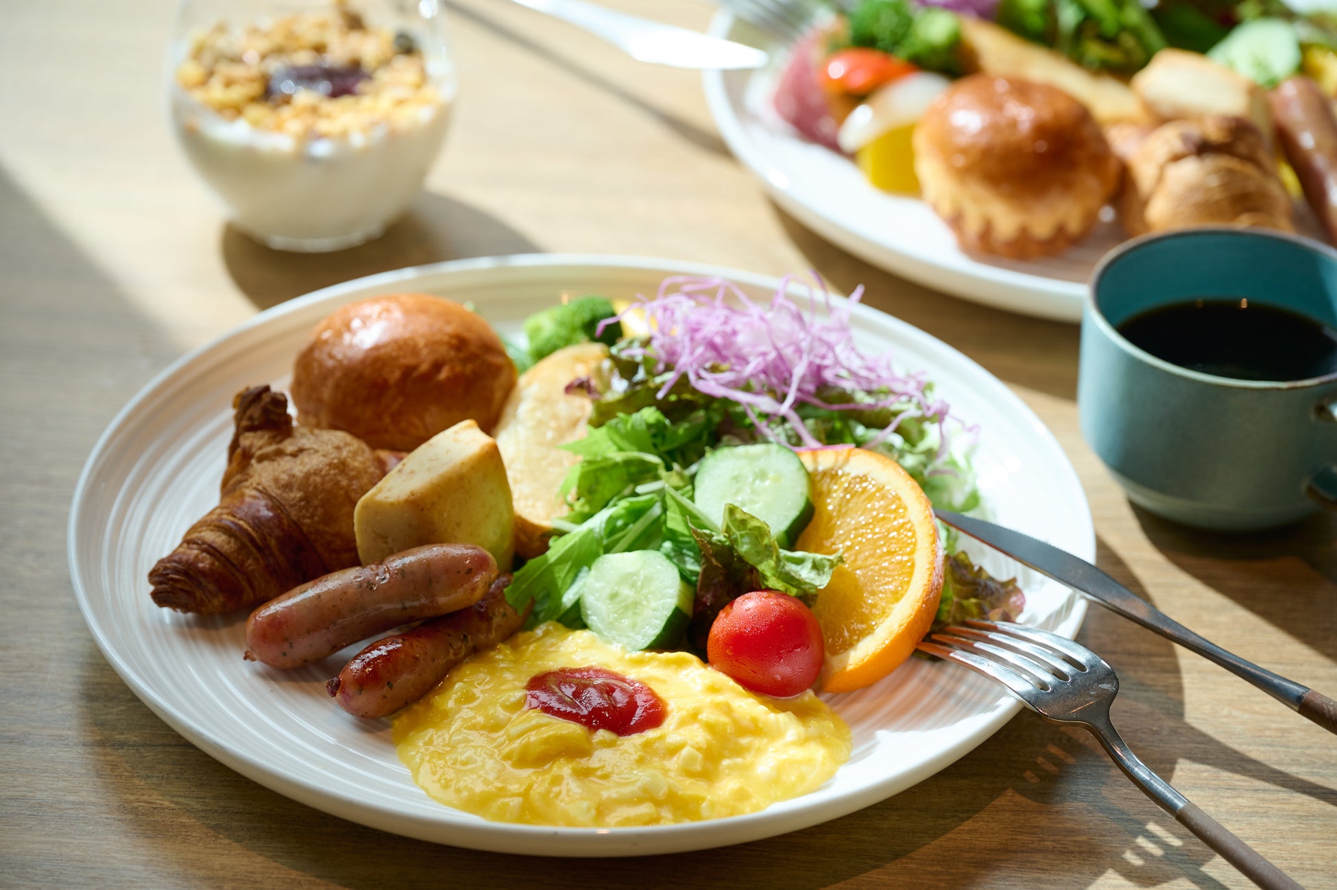 梅小路公園側の緑あふれる眺めでリラックスできる、ガーデンツインルームのペアチケット。テーブル・チェアのセットが配置されたテラス付きのお部屋です。朝食は、京都の素材をたくさん取り入れた「ご飯がおいしくなる」バラエティ豊かなブッフェをお楽しみいただけます。和食も洋食も取りそろえた、「思わず何度もおかわりしたくなる、何から食べようか迷う」種類豊富なラインナップ。テイクアウトもOKなので、お部屋のテラスでゆったりモーニングも満喫できます。