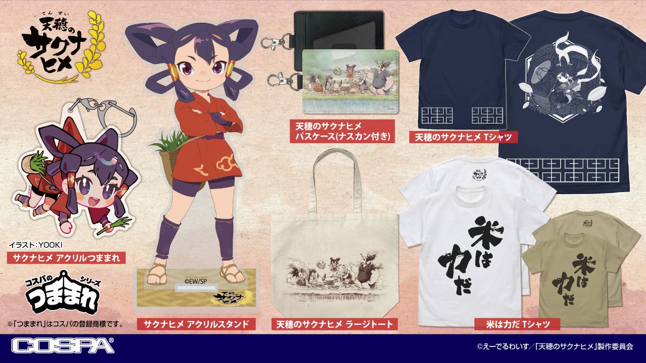 TVアニメ「天穂のサクナヒメ」より、「米は力だ Tシャツ」をはじめ、 サクナヒメの「アクリルつままれ」や 「ラージトート」、「パスケース」など新グッズがCOSPA(コスパ)からラインナップいたします。