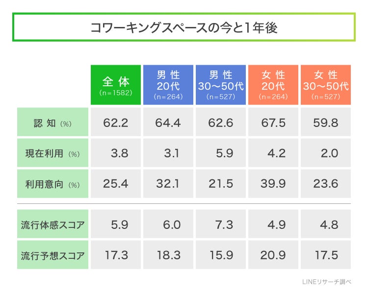 LINEリサーチ、全国20~59歳の男女を対象に、コワーキングスペースに関する調査を実施
