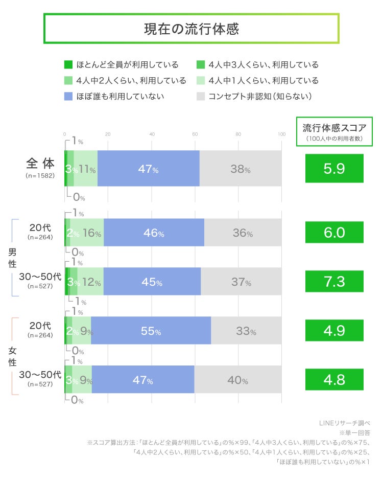 流行体感としては、現状“およそ17人に1人が利用している”イメージを持たれているようです。そして、今から1年後には、現在の約3倍にあたる“6人に1人くらいが利用していそう”というイメージを持たれています。