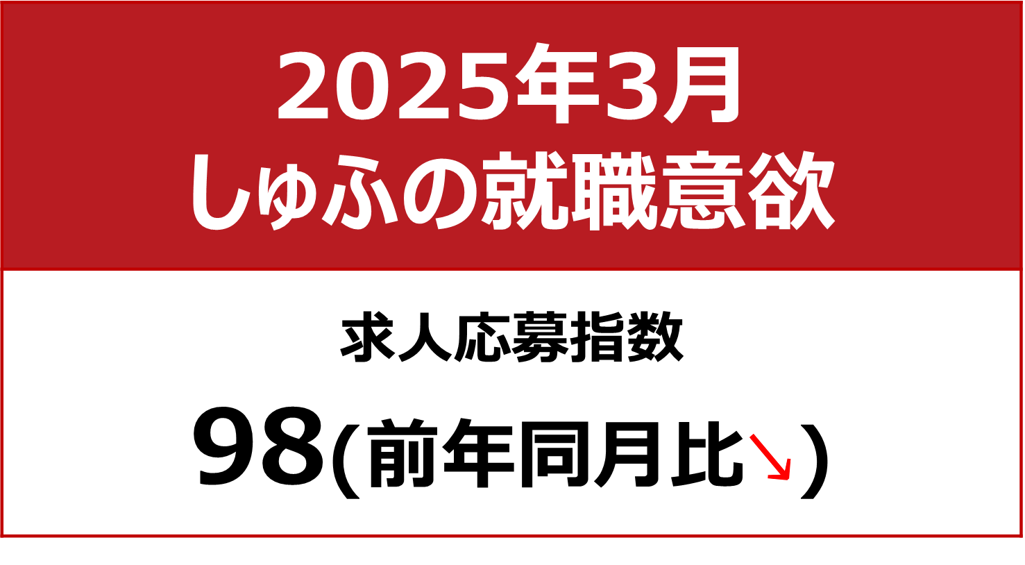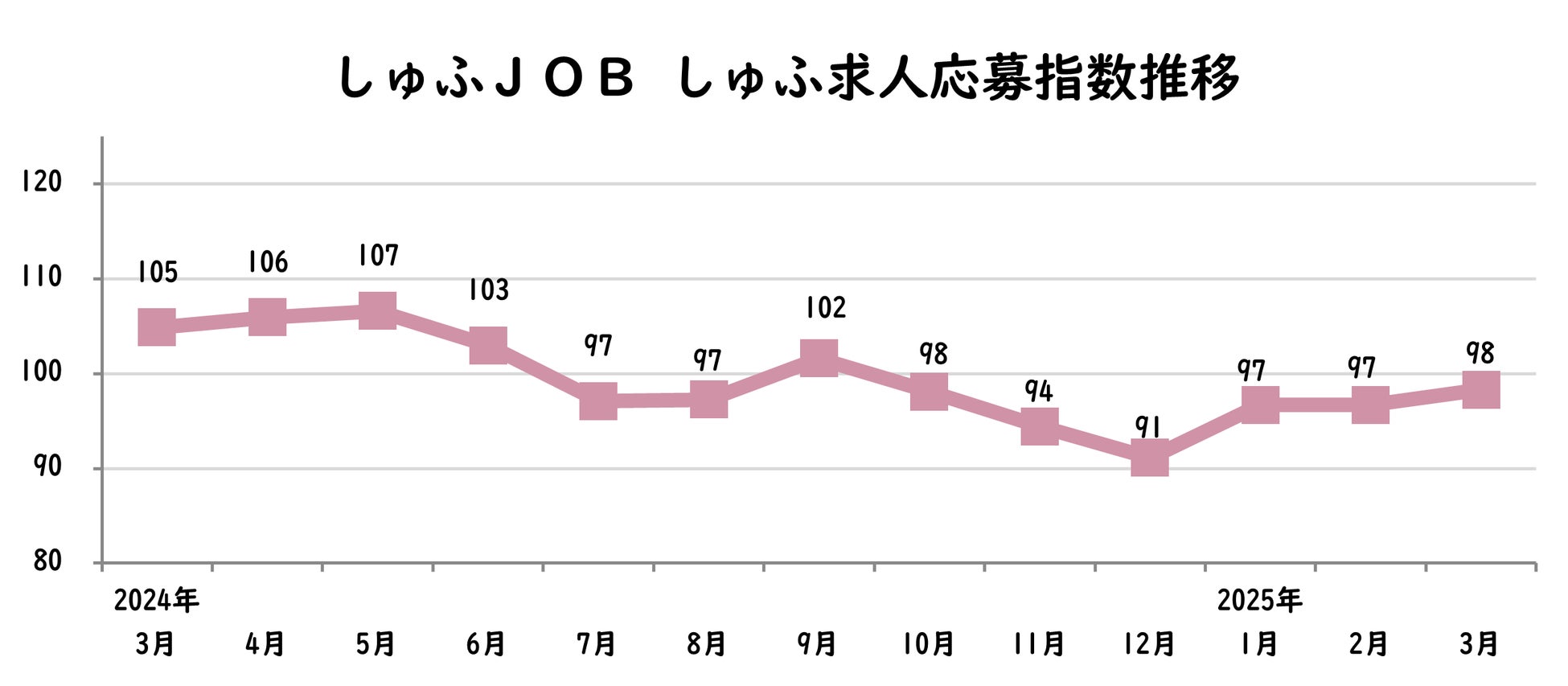 【しゅふの就職意欲調査 2025年3月】しゅふ求人の応募指数98/応募数、10ヶ月ぶりに過去最多を更新
