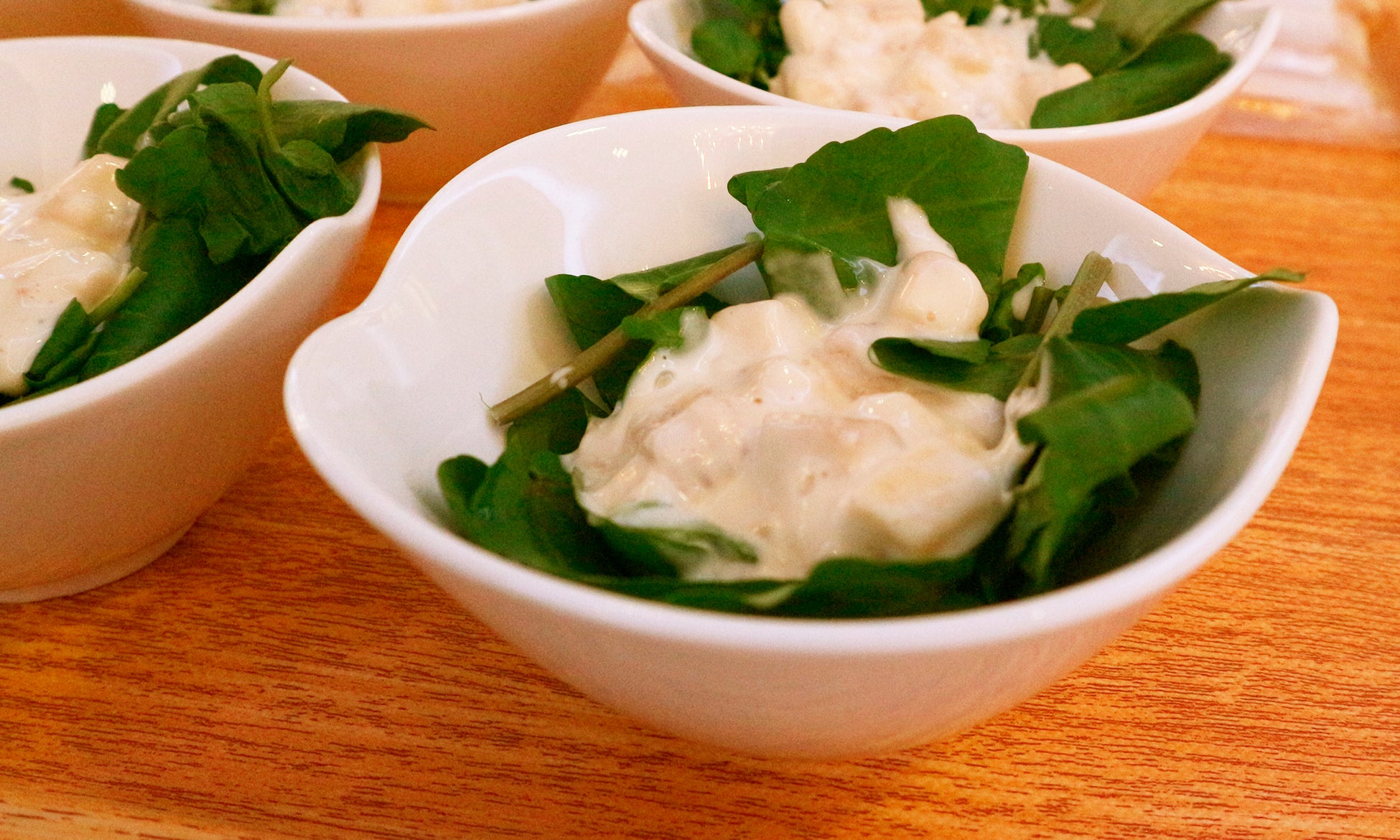 交流会では、中垣さんが育てた有機クレソンと、パルシステムが産直提携を結ぶタイの産地のバナナを使用した「クレソンのバナナマヨあえ」が振る舞われました。中垣さんが、野菜嫌いだった我が子のために考案したレシピです。 参加者は、生産者が栽培に向き合う姿勢や工夫を聞きながら試食を楽しみ「苦味がマイルドで美味しい」「家でも真似したい」など感想を伝えました。