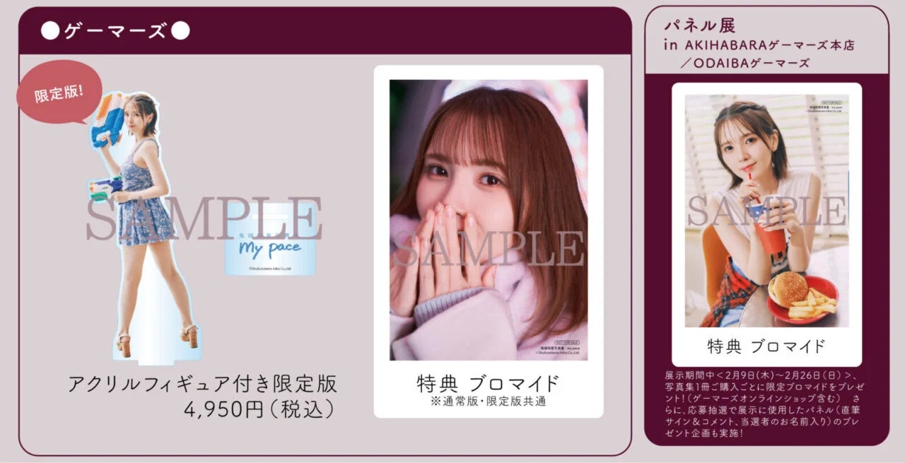 さらに、写真集発売を記念して、アニメイト秋葉原2号館、AKIHABARAゲーマーズ本店/ODAIBAゲーマーズにて開催されるパネル展のブロマイドも公開。