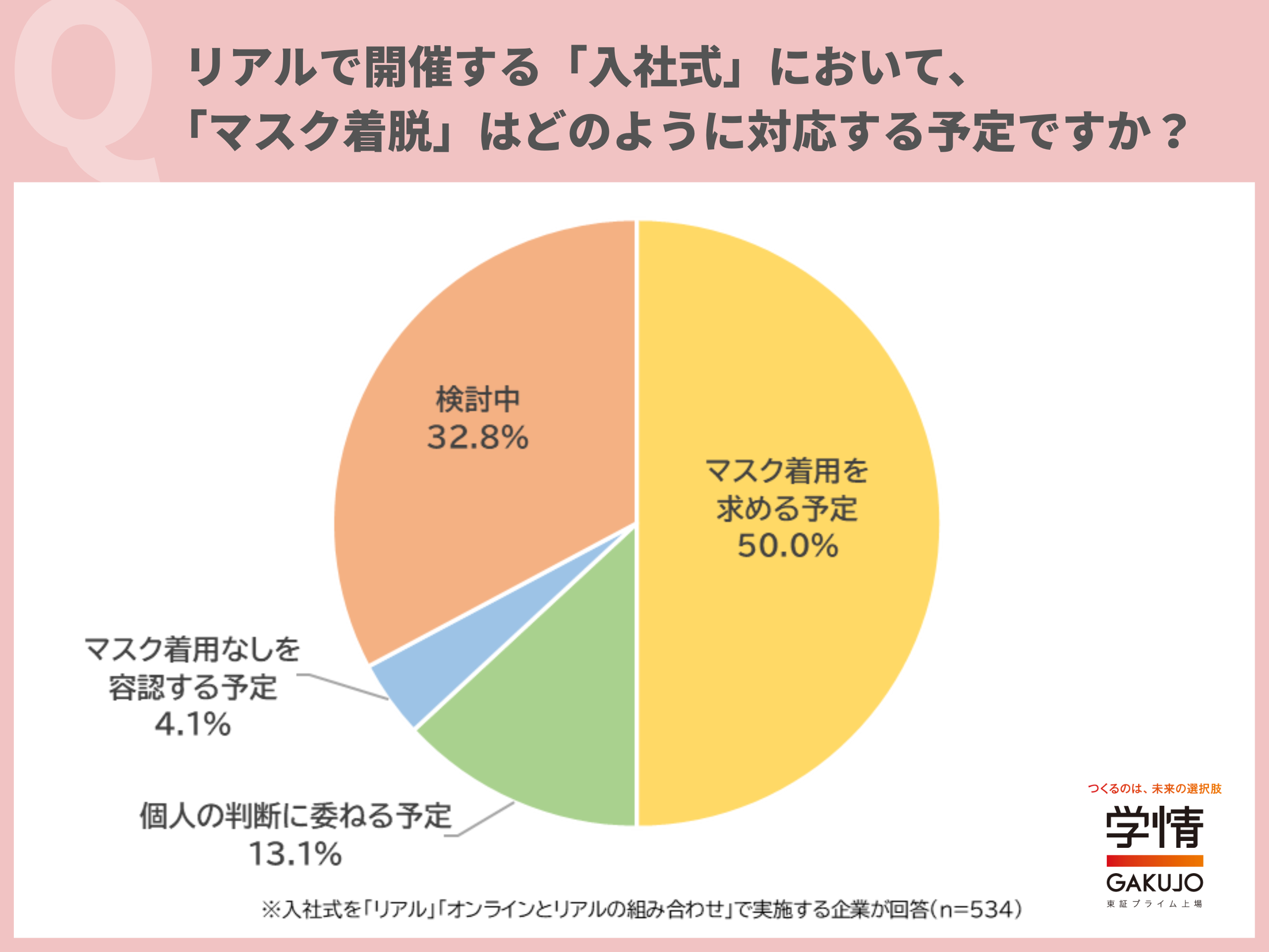 「検討中」とした企業からは、「3月中の様子を見て検討したい」「マスクの有無は直前の連絡でも対応可能なため、3月13日以降の世の中の状況を見て判断する」「会話をする際は着用、その他は個人の判断に委ねるなど、式典内でも対応を分けることを検討している」といった声が寄せられています。