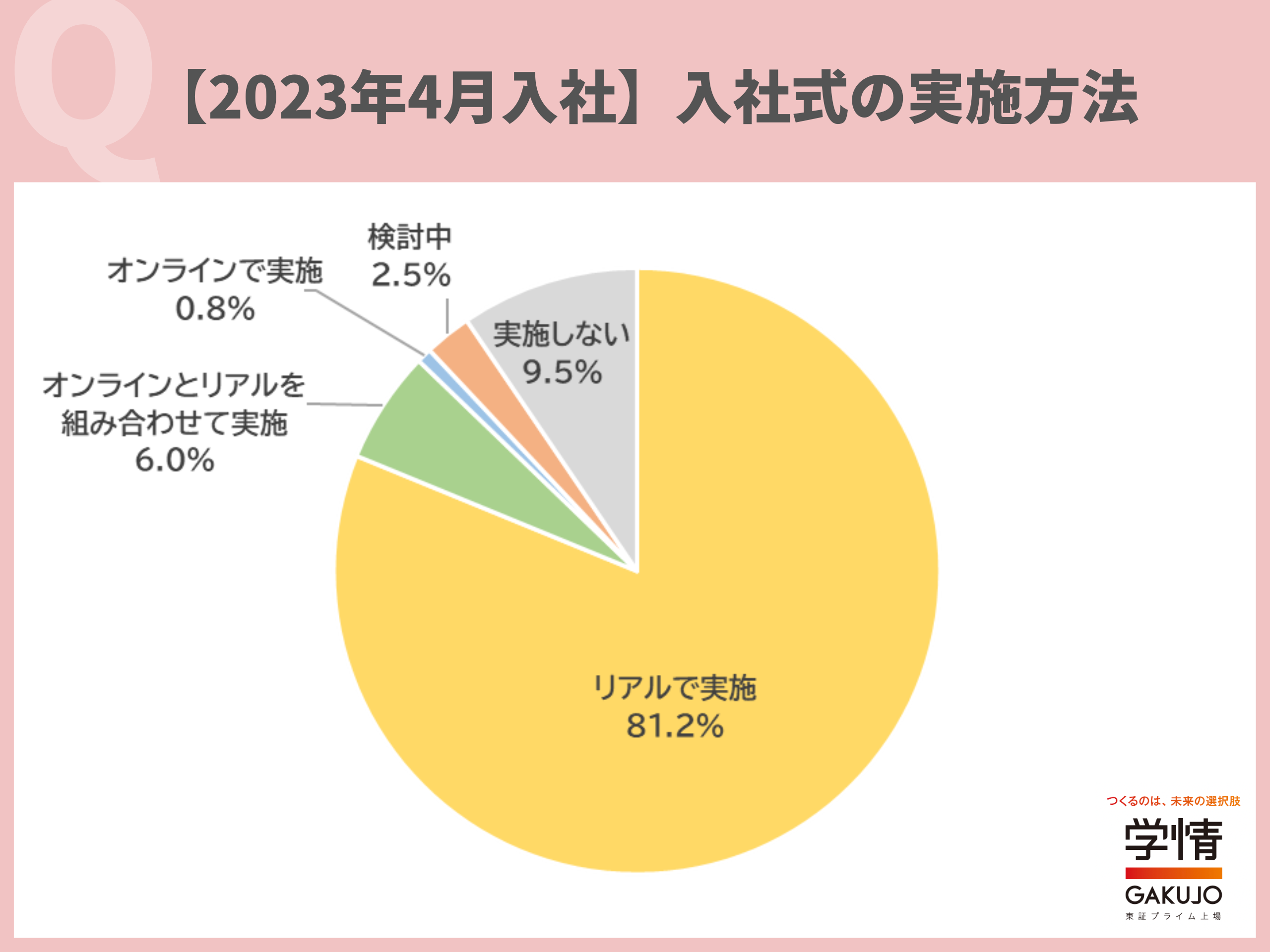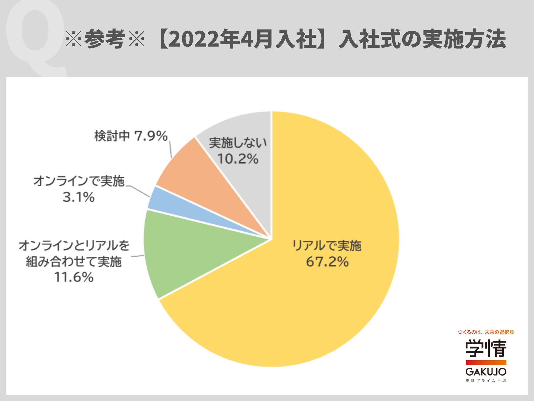 2023年4月の入社式はコロナ禍で4回目となります。新社会人の約7割は「リアル」での入社式を希望しており、「同期と交流したい」「リアルで参加し、入社したという実感を得たい」といった声が上がっています。「リアル」を求める声の拡大や、行動制限の緩和を受け、入社式の実施方法を調査しました。