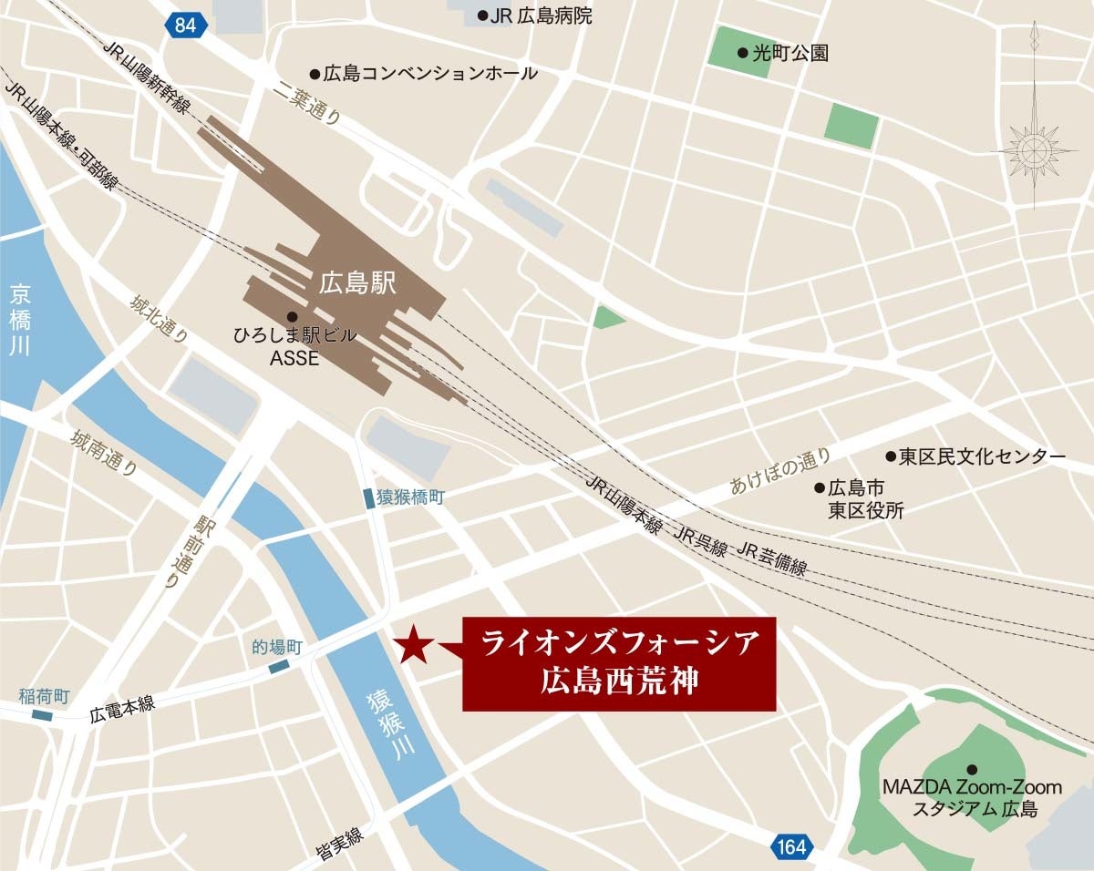 JR「広島」駅徒歩5分、市内を一望する猿猴川沿いに立地