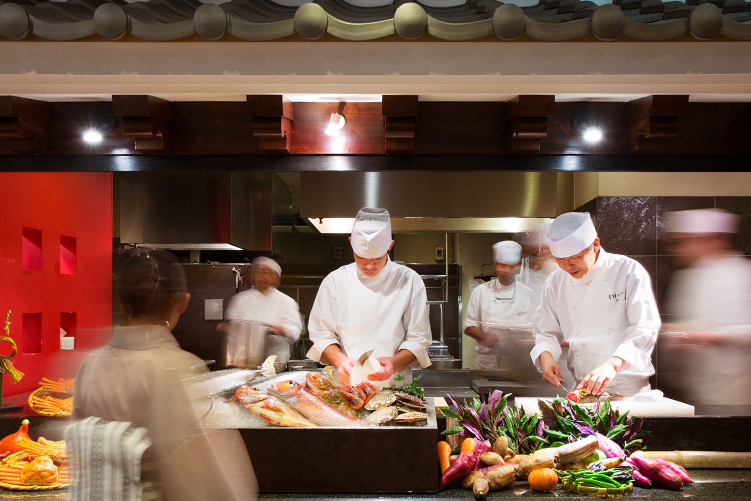 のどぐろ、甘海老、ズワイガニなどの海の幸、能登牛、加賀野菜は、加賀会席と本格的な鉄板焼レストランでご賞味いただけます。