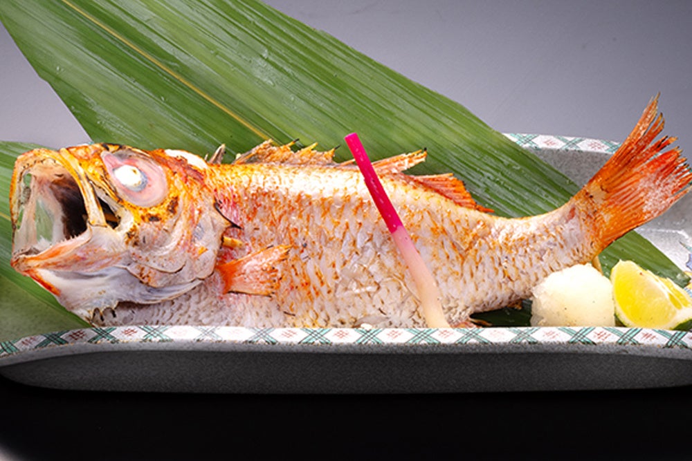 焼物:姿のどぐろ珠洲の塩焼き、黒毛和牛蕗味噌焼き