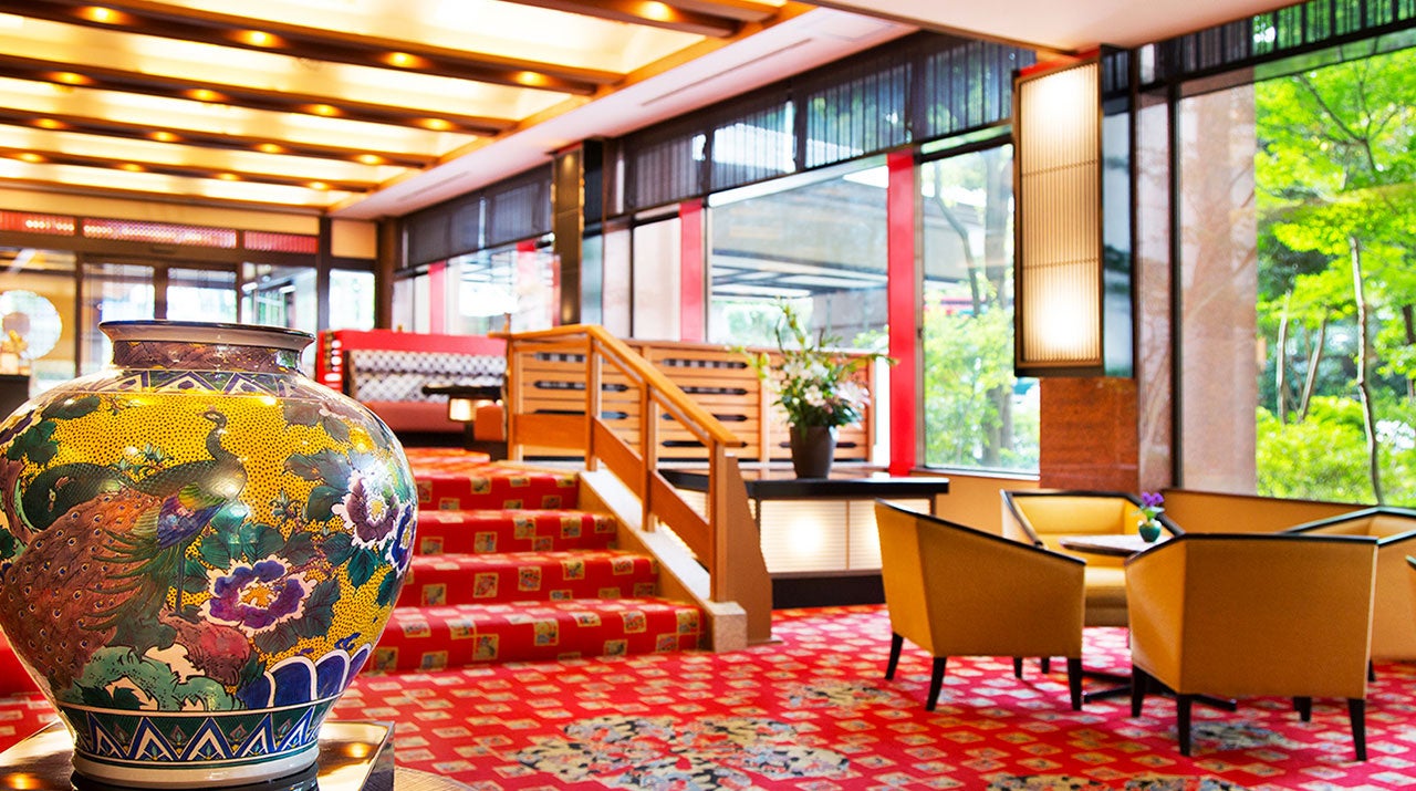 館内には山中塗、九谷焼、加賀水引などの伝統工芸品を配し、加賀の上質な文化が感じられる設えです。まろやかな湯はph値が高く、温泉大浴場や露天風呂、足湯、貸切風呂、グループ旅館「かがり吉祥亭」への湯めぐりで楽しめます。
