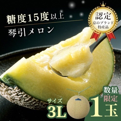 【京のブランド産品】 京たんごメロン 琴引メロン 1玉 3Lサイズ 1.9~2.2kg 高糖度