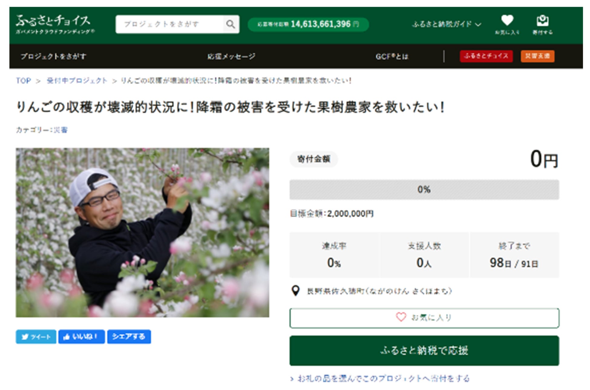 ◆ プロジェクト名: りんごの収穫が壊滅的状況に!降霜の被害を受けた果樹農家を救いたい!