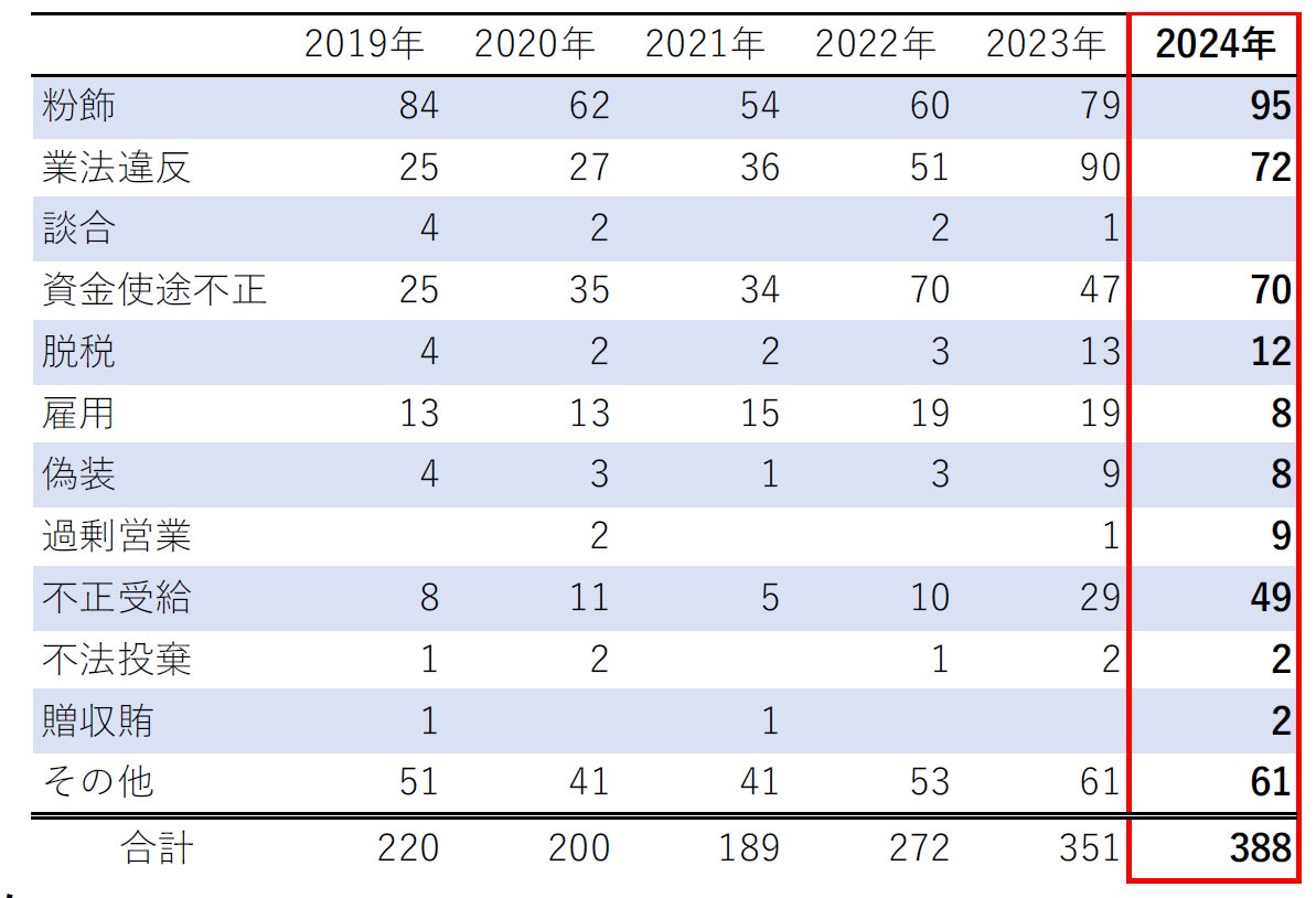 2024年のコンプラ違反倒産、過去最多の388件
