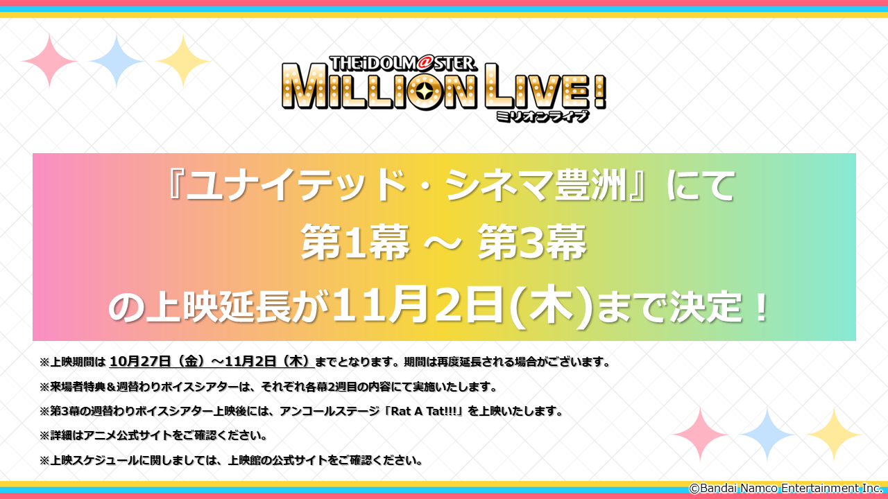 ユナイテッド・シネマ豊洲にて第1~3幕の上映延長が11/2(木)まで決定!