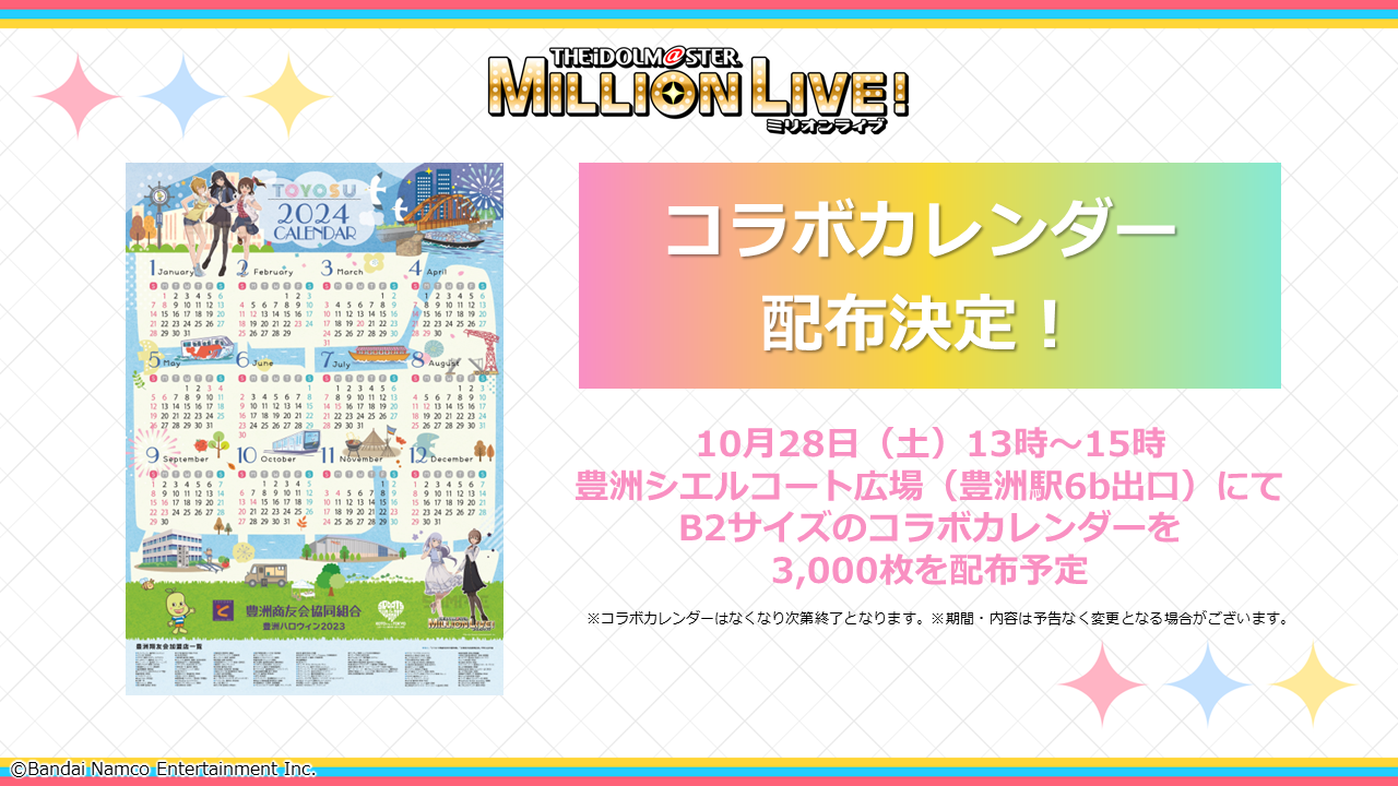 本コラボカードの裏面デザインにもなっている、B2サイズのコラボカレンダーの配布が決定いたしました。
