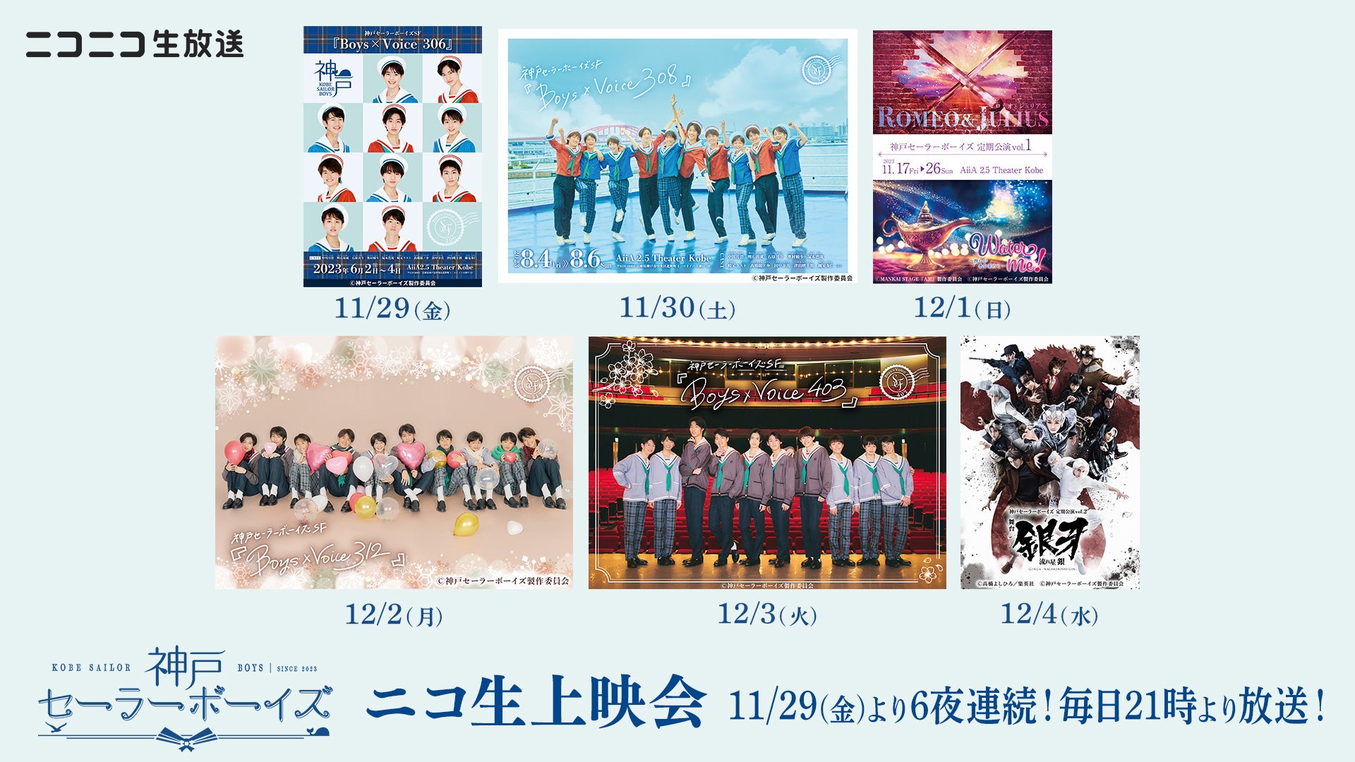 【神戸セーラーボーイズ】11月29日(金)~12月4日(水)舞台公演 全6作品のニコ生上映会が決定!