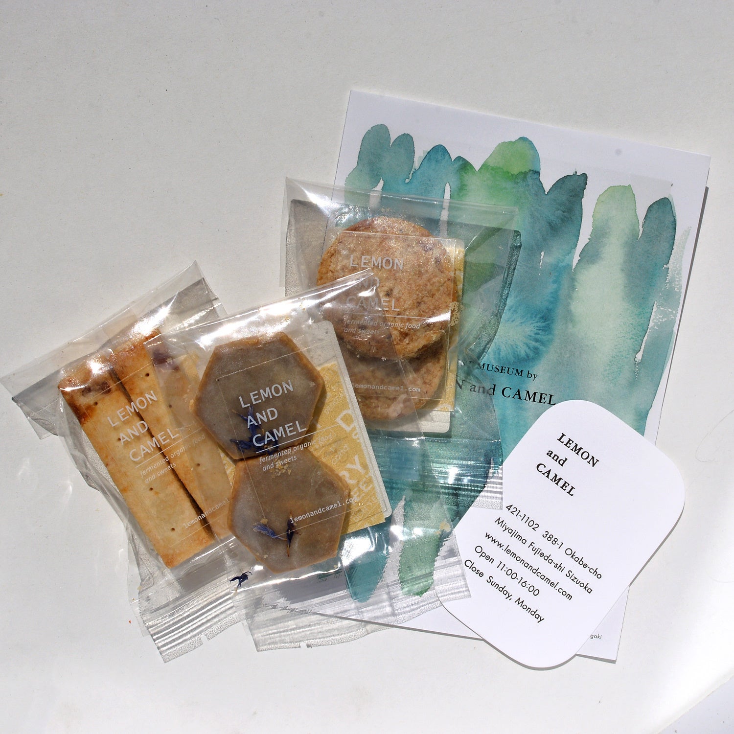ヴィーガンの発酵菓子を展開する、「檸檬とラクダ」による、3周年限定のクッキーのプチギフトをご購入いただいた方に先着にてご用意。テーマである“Pangong Tso”と天然石の形からインスピレーションを受けたARTIDA OUDのオリジナルのクッキーも特別に制作。