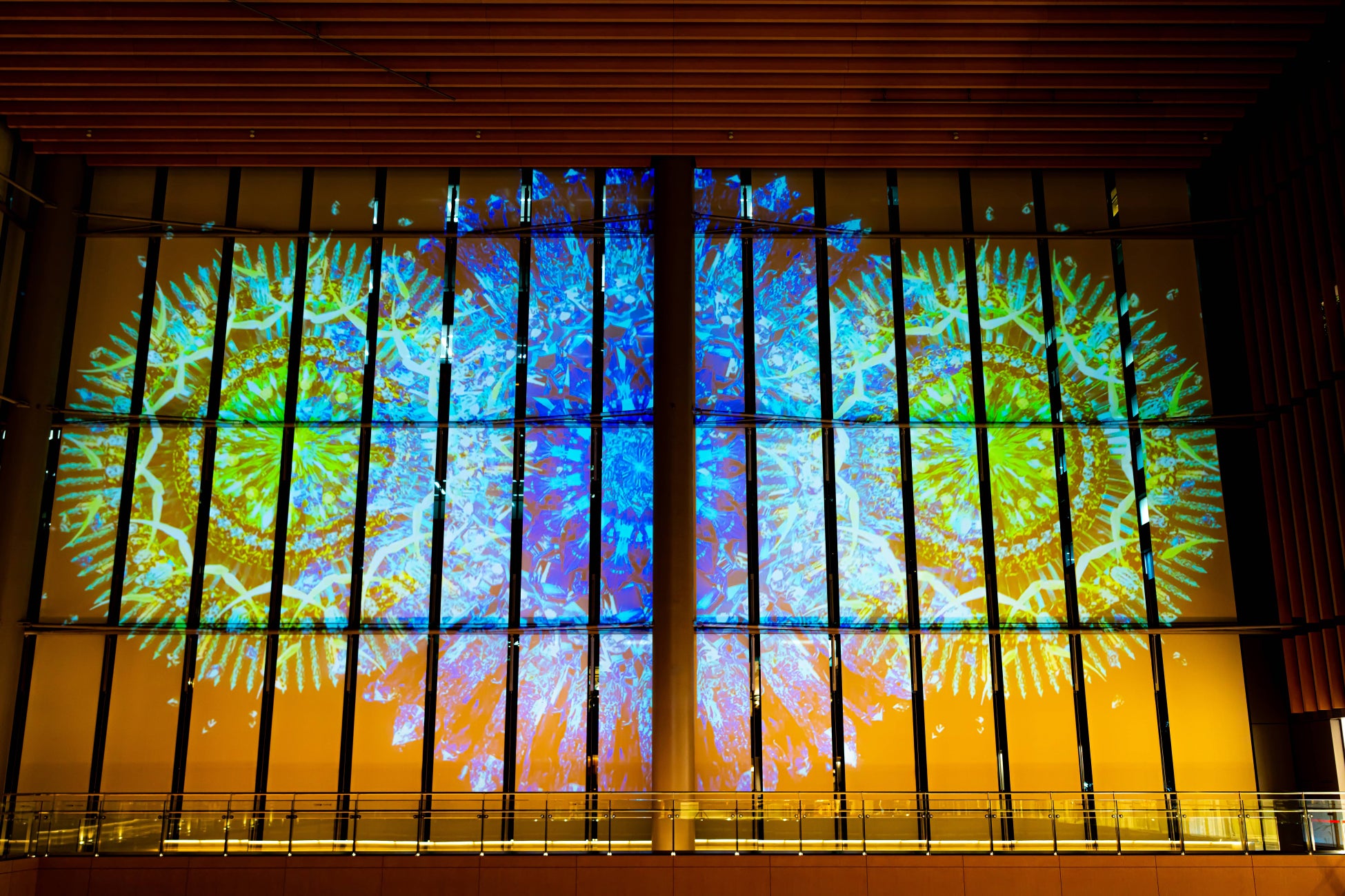 ■丸ビル1Fマルキューブを彩るプロジェクション花火ショーを毎晩開催!オリジナルのだるまアートも展示