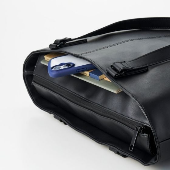■素材、金具も全てブラックで統一された落ち着いたデザインで、通勤から休日まで幅広いシーンで使えます。