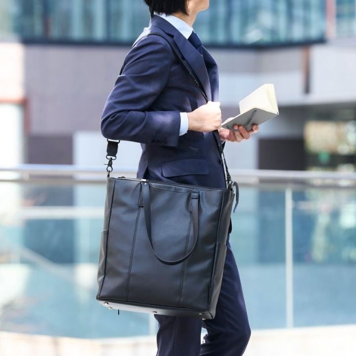 ショルダーベルト付きで持ち方が選べる2Wayタイプ!大容量ビジネストートバッグ/縦型
