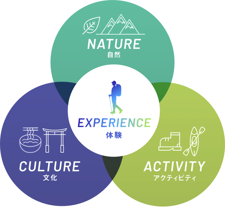 『アクティビティ』『自然』『異文化体験』の3つの要素のうち、2つ以上を組み合わせた旅行形態のことで、アクティビティを通じて自然体験や異文化体験を行い、地域の人々と双方向で触れ合い楽しみながら、その土地の自然と文化をより深く知ることで自分の内面が変わっていくような旅行形態を指します。