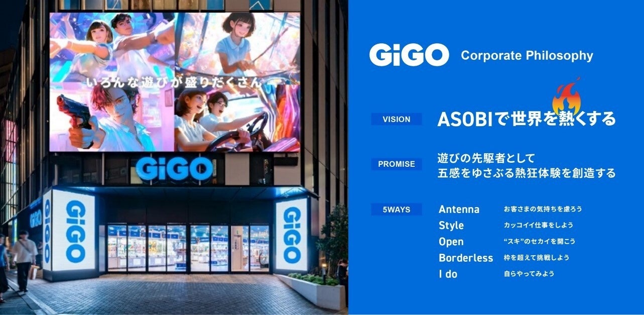 どんな時代であっても、人々の欲求を「リアルな場」で満たし進化し続けること、これが新しいゲームセンターの価値だと考えています。人々の欲求を満たすオアシスであり続ける。それを表すキーワードが「Get into the Gaming Oasis=ゲームのオアシスに飛び込め!」であり、その頭文字をとって「GiGO(ギーゴ)」といたしました。