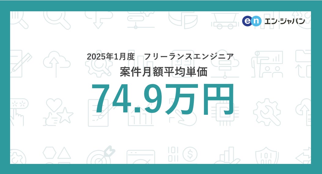 【2025年1月】フリーランス市場月額単価の動向フリーランスエンジニア案件の月額平均単価は74.9万円