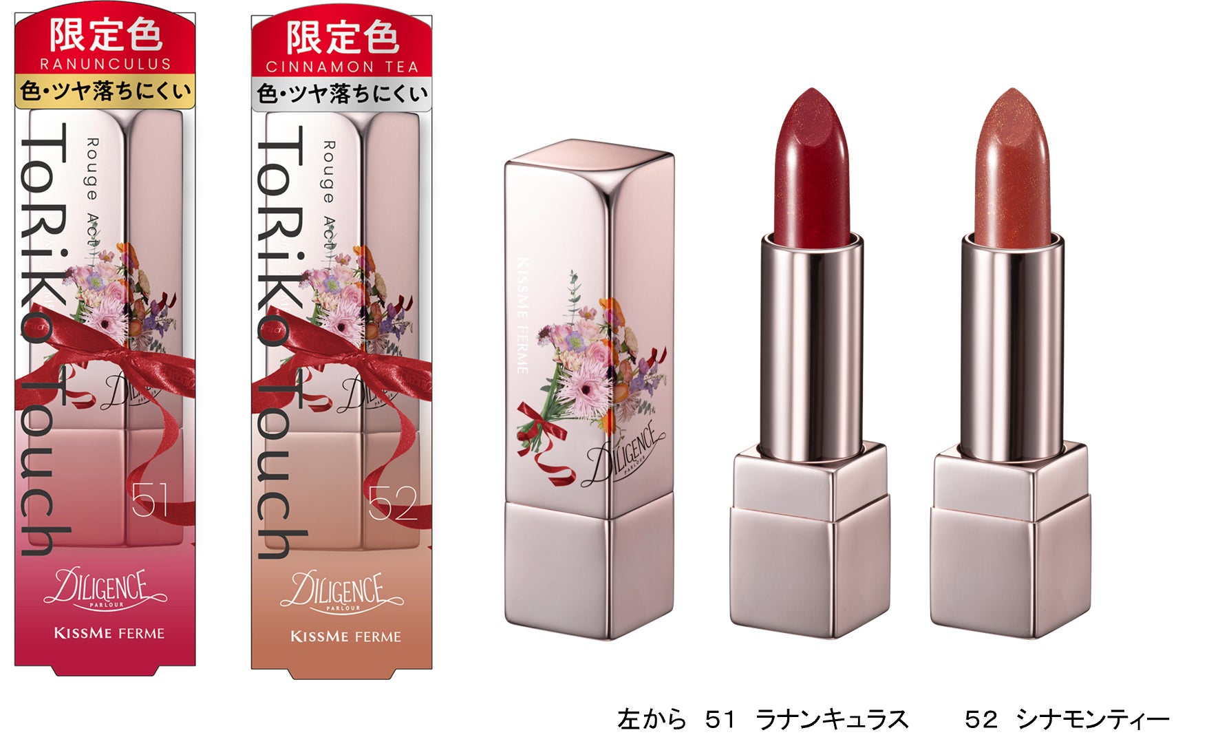 キスミー フェルムの「ルージュアクト」に、「DILIGENCE PARLOUR」の世界観を華やかなブーケで表現した特別なデザインが数量限定で登場。
