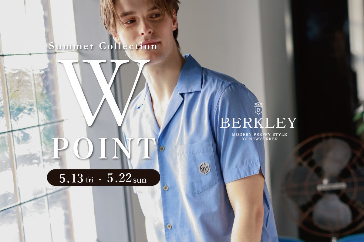 衣料事業の主力ブランドNEWYORKERを中心とした衣料服飾品の企画、製造、販売、不動産の売買、仲介、賃貸管理を行っている株式会社ダイドーフォワード(本社:東京都千代田区/代表取締役:萩原 秀敏)は、バークレイのショップにてポイントがお得に貯まる!「Summer Collection 2022 Wポイントフェア」を5月13日(金)から開催いたします。