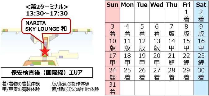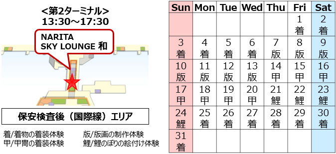 成田空港では、海外から日本を訪れるお客様に、日本の文化に触れて「また訪れたい」という思いを抱いていただくため、“日本ならでは”を体験いただけるイベントでおもてなしをしております。