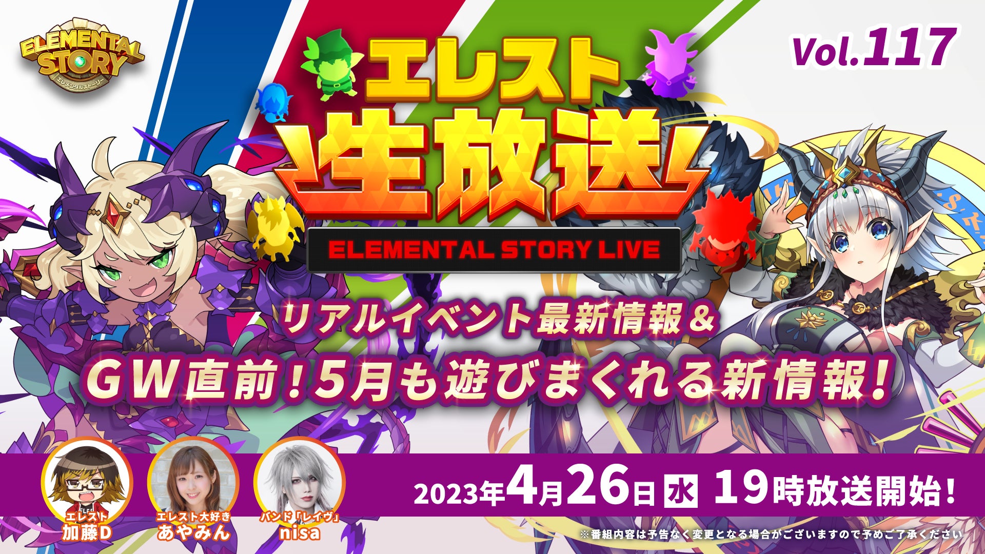 『エレメンタルストーリー』が、エレスト公式生放送vol.117を4月26日(水)19:00より配信!5月から始まる新イベント情報&リアルイベント最新情報をお届け!