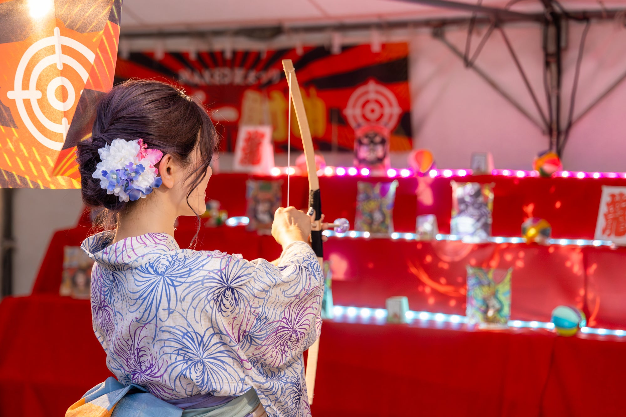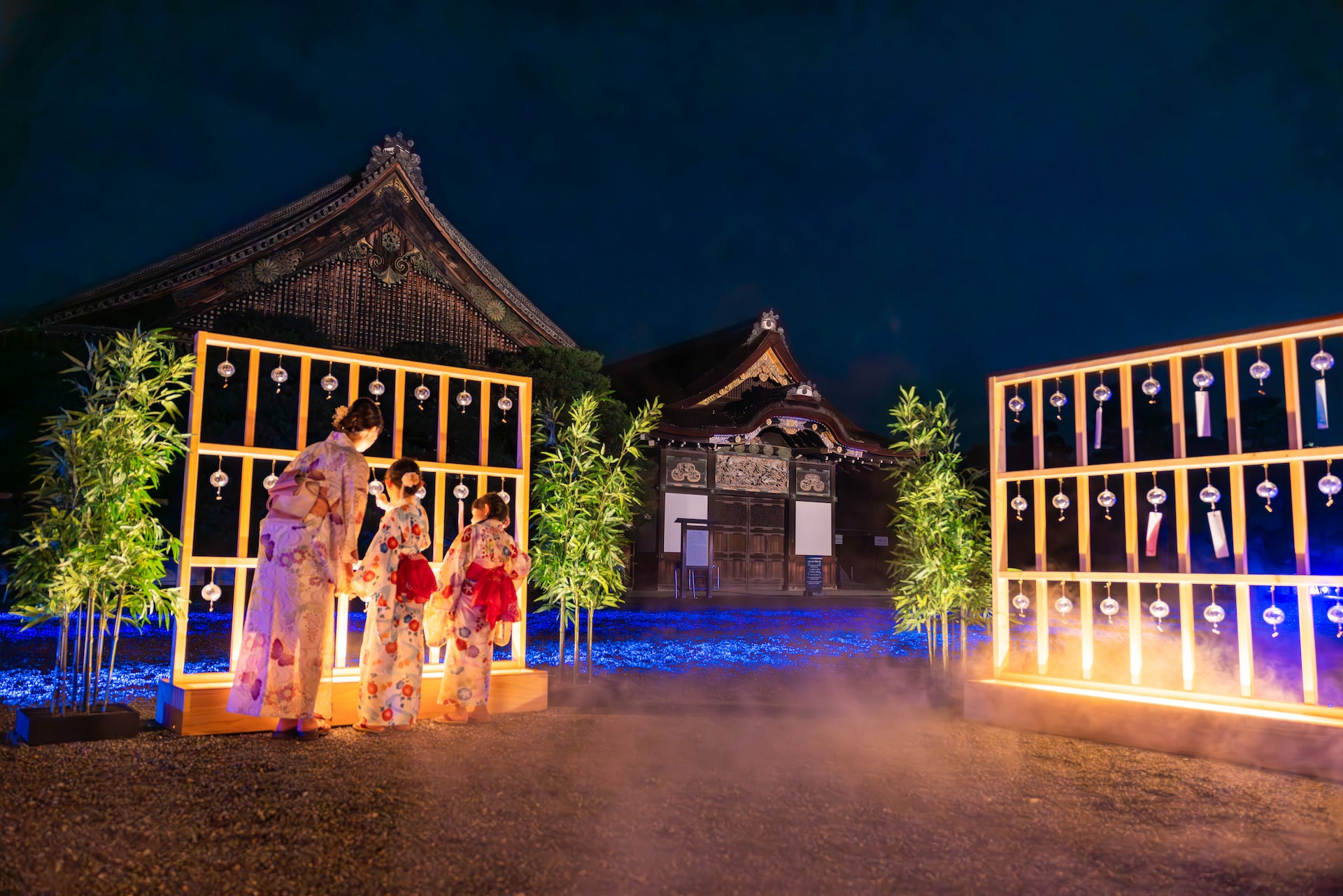 ネイキッドがプロデュースする日本の夏を感じられる風物詩が詰まった夏まつり。本イベントでは、歴史が息づく世界遺産・二条城を、プロジェクションマッピング花火や涼やかな風鈴の音色が広がる天の川ライトアップが華やかに彩ります。さらに今年は台所前庭エリアにおまつり櫓(やぐら)が初登場。来場者全員で盆踊りを楽しめる「盆踊りタイム」演出や、子どもにも大人気の懐かし縁日屋台、京かき氷をはじめ夏まつりグルメを味わえる飲食屋台も充実し、ネイキッドのおまつりアートで、日本の夏を満喫する二条城だけの夏の夜をお楽しみいただけます。
