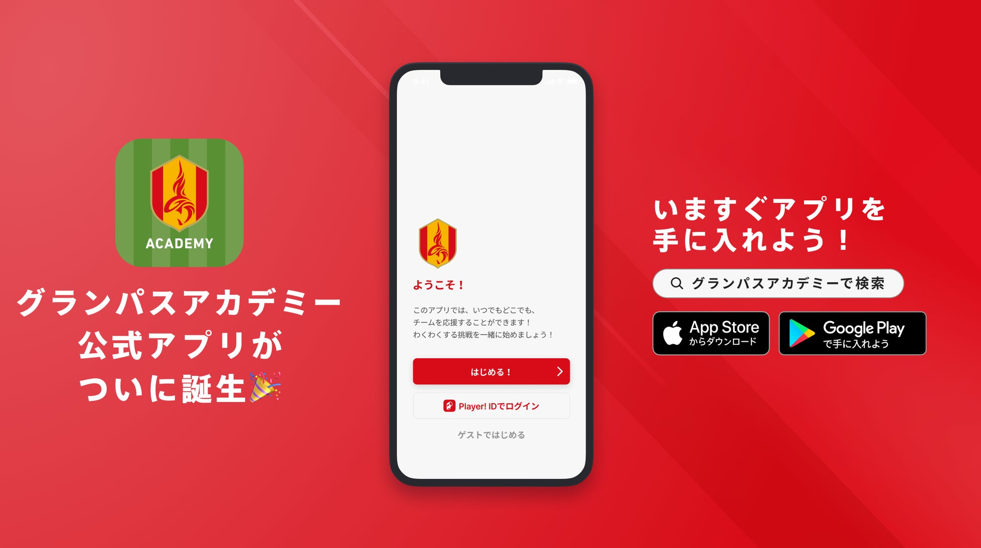 AppStoreもしくはGooglePlayで「名古屋グランパスアカデミー 公式アプリ」と検索!