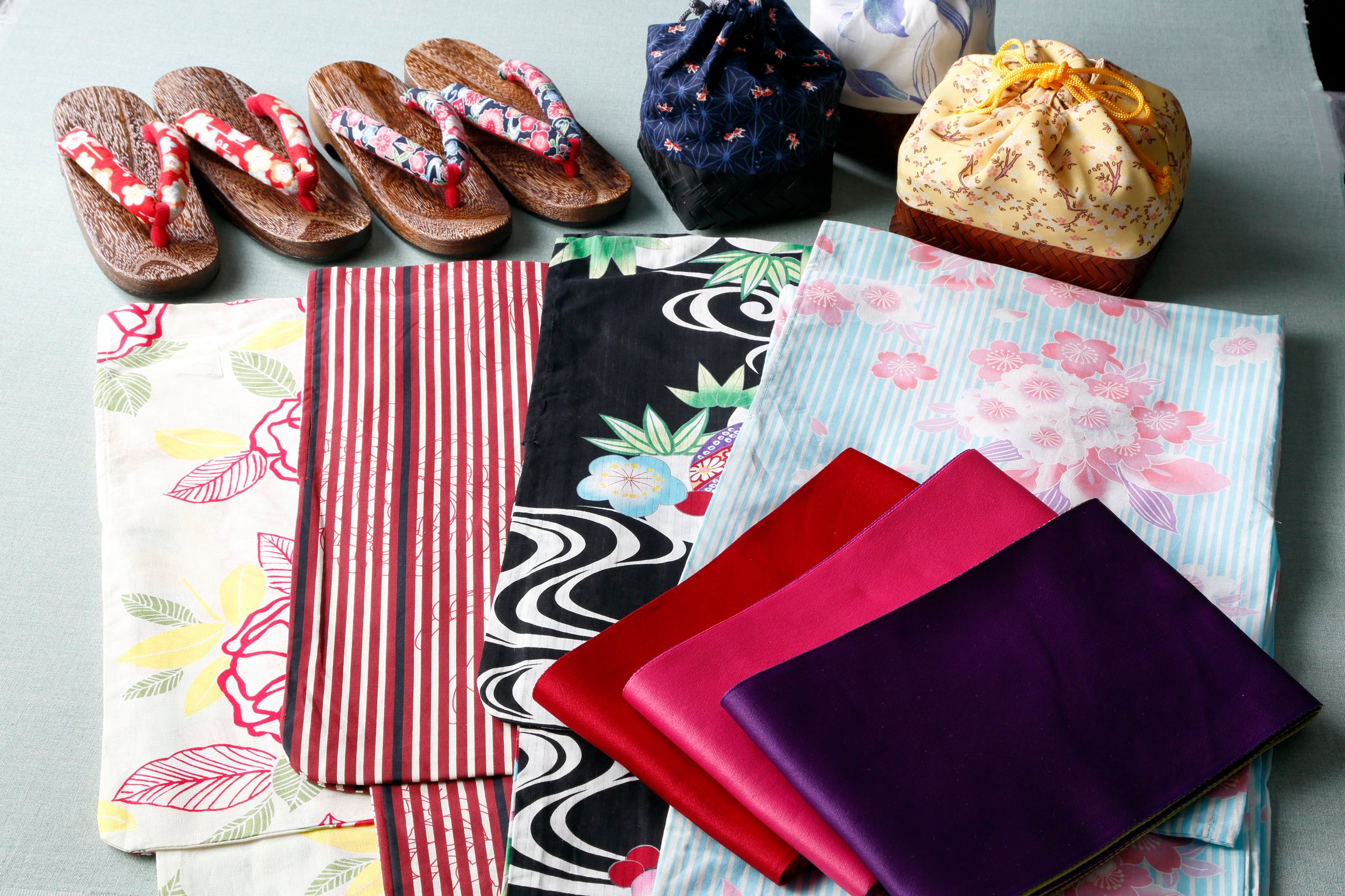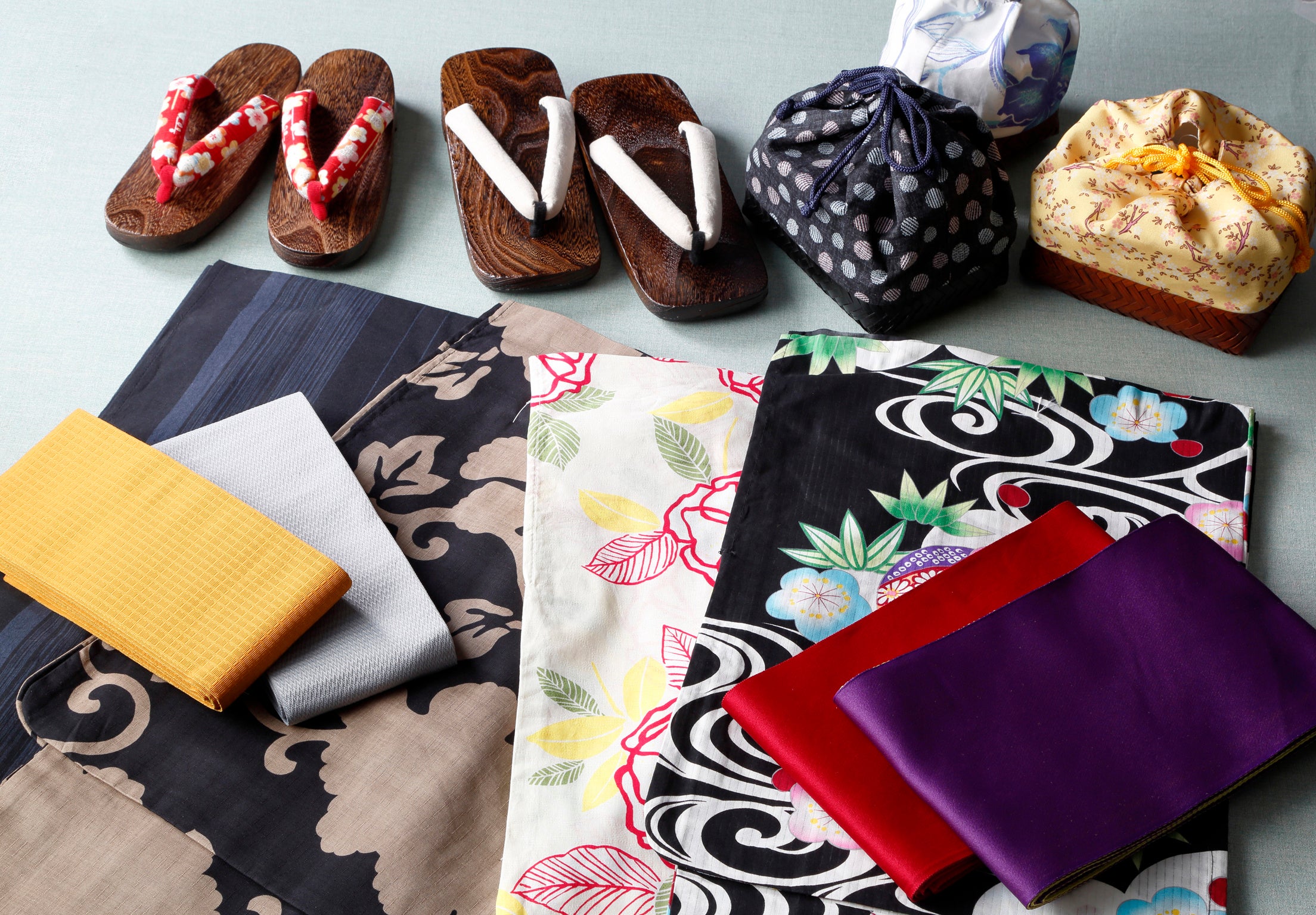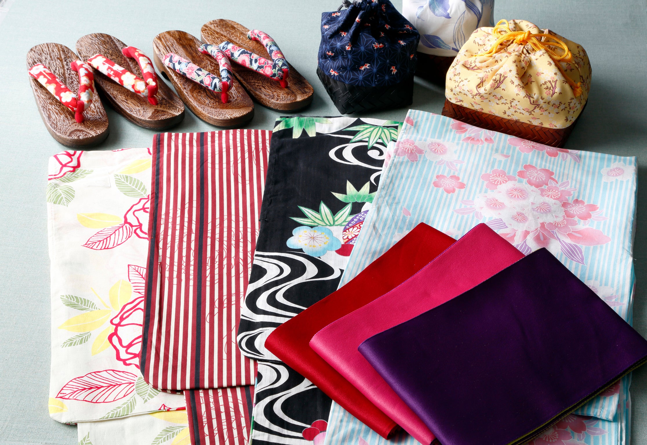 【内 容】女性浴衣セット(浴衣、帯、下駄、腰紐、巾着、着付けマニュアル)