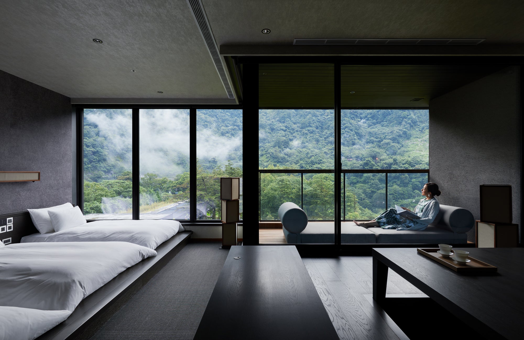 け流しの半露天風呂付客室、風と水を感じる開放的なパブリック空間、滞在シーンに合わ