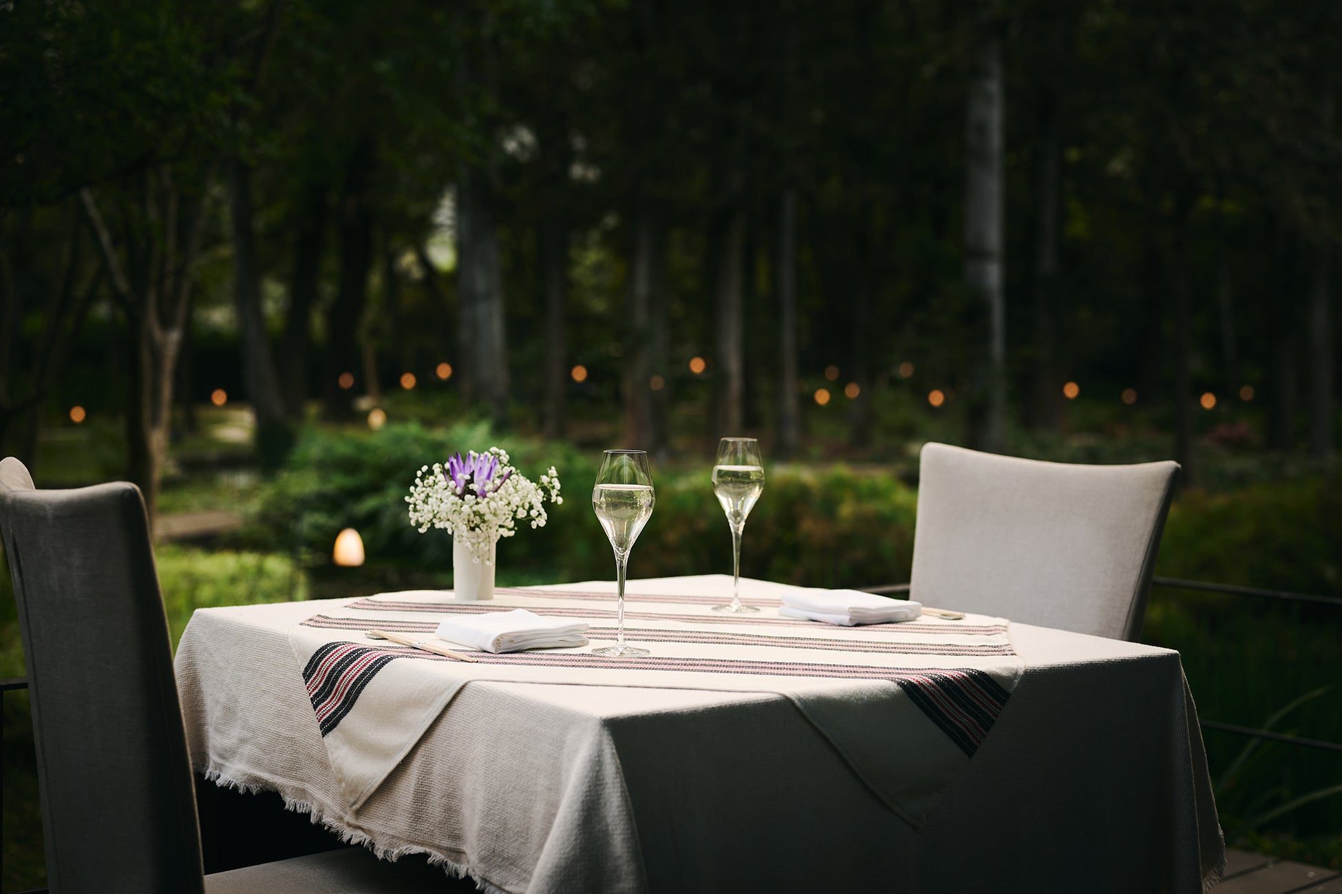 谷關周辺地域は、しいたけをはじめとするキノコ類の産地であり、その生産量は台湾全体の5~6割を占めます。(※3)豊富な食物繊維や栄養素を含むキノコ類は、タイヤル族にとって貴重な食材です。キノコづくしディナーでは、前菜、スープ、リゾット、デザートの五品すべてにキノコがふんだんに使われ、地元の滋味を味わい尽くすことができます。ディナーはウォーターガーデンを望むテラスに設けたテーブルに用意され、心地よい自然の風と共に、料理を楽しむことができます。