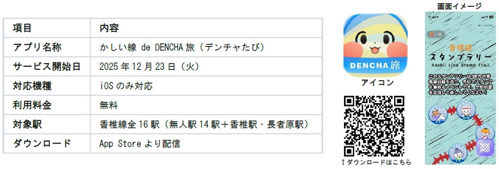このたび、香椎線沿線の魅力を発信する新たな試みとして、デジタル駅スタンプ収集アプリ「かしい線 de DENCHA旅(デンチャたび)」のサービスを2025年12月23日(火)より開始します。