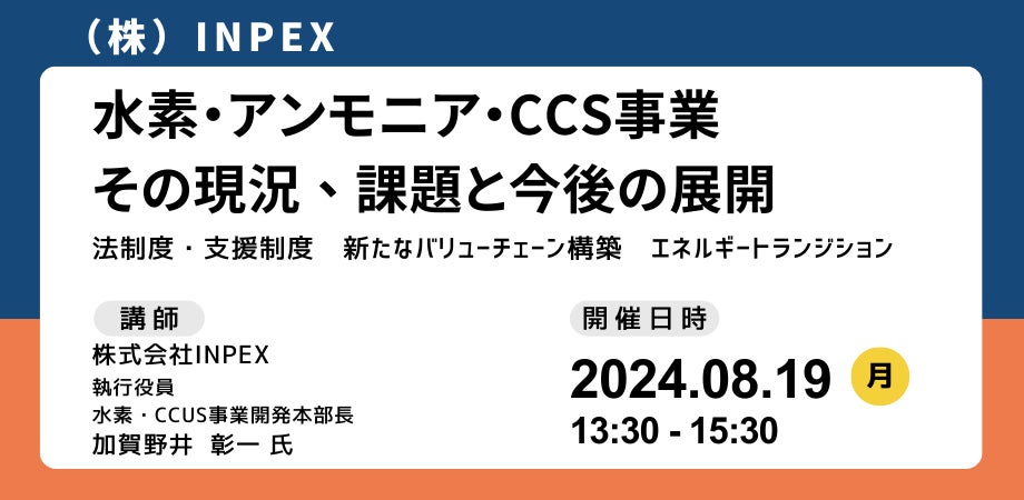 【JPIセミナー】(株)INPEX「水素・アンモニア・CCS事業 その現況、課題と今後の展開」8月19日(月) 開催