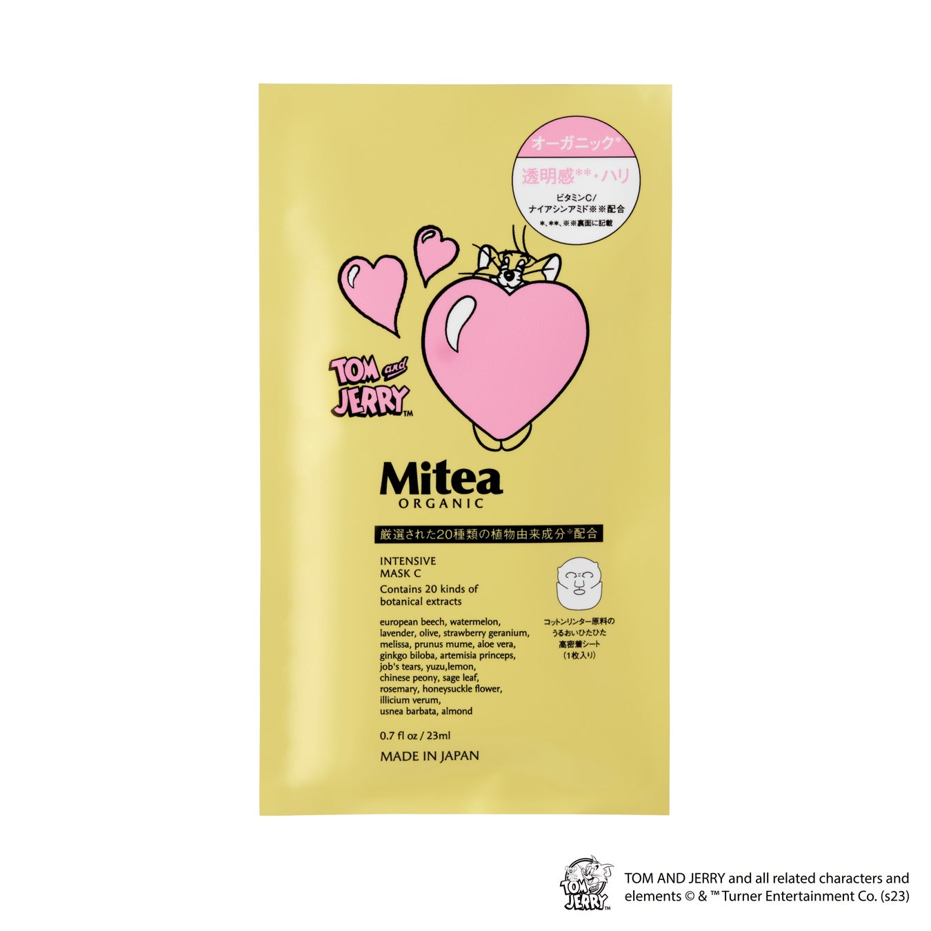 ファミリーマートは「持続可能な社会を実現し、家族のようにつながる、親しみのあるコンビニエンスストアになること」を、コスメキッチンは「オーガニックなライフスタイルを日本中に届け、人々をHAPPY にすること」を目指しており、両社の見据える方向性が合致して2022年10月に「Mitea ORGANIC」が誕生しました。発売以降、美容誌のベストコスメを多数受賞するなど話題を集め、ご好評いただいております。このたび、新アイテムである「インテンシブマスクC」を発売するとともに、人気キャラクター「トムとジェリー」とのパッケージコラボレーションを実施いたします。