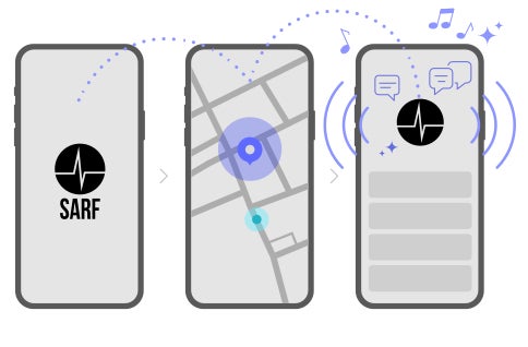 「SARF」は、⾳声×位置情報を用いて「コンテンツ」や「場所」に新たな価値を生み出していくサービスです。音声AR技術で、その場所でしか聴くことが出来ない音声コンテンツを、スマートフォンから多言語で楽しめます。