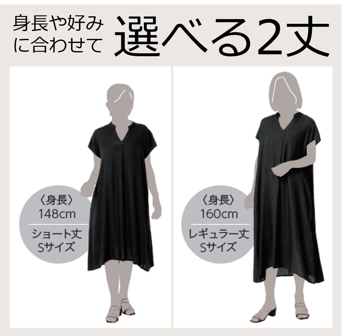 どちらの商品も、お客様の身長やお好みに合わせて、レギュラー丈・ショート丈をお選びいただけます。サイズによって丈が異なりますので、詳しくは商品ページにてご確認ください。