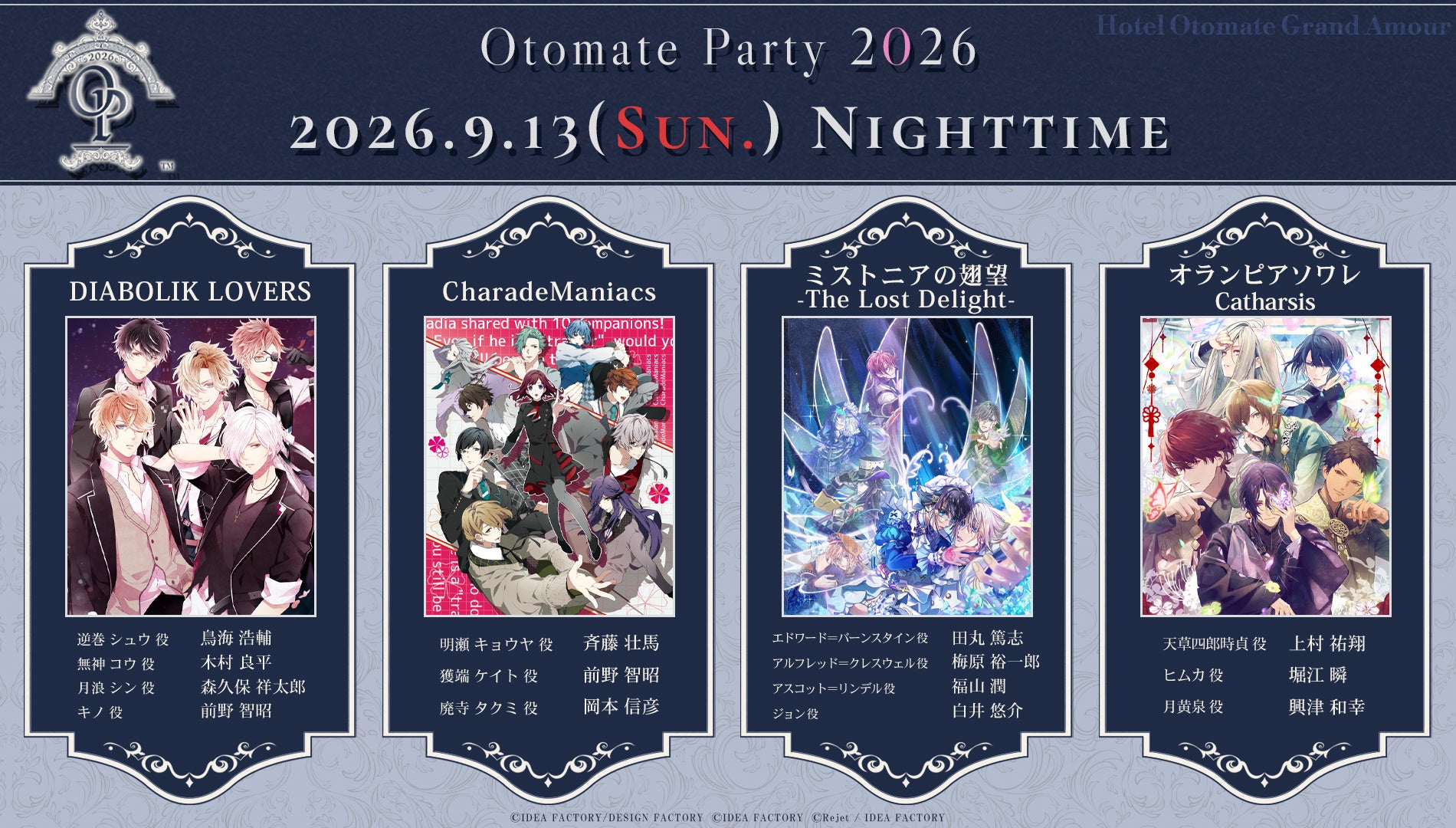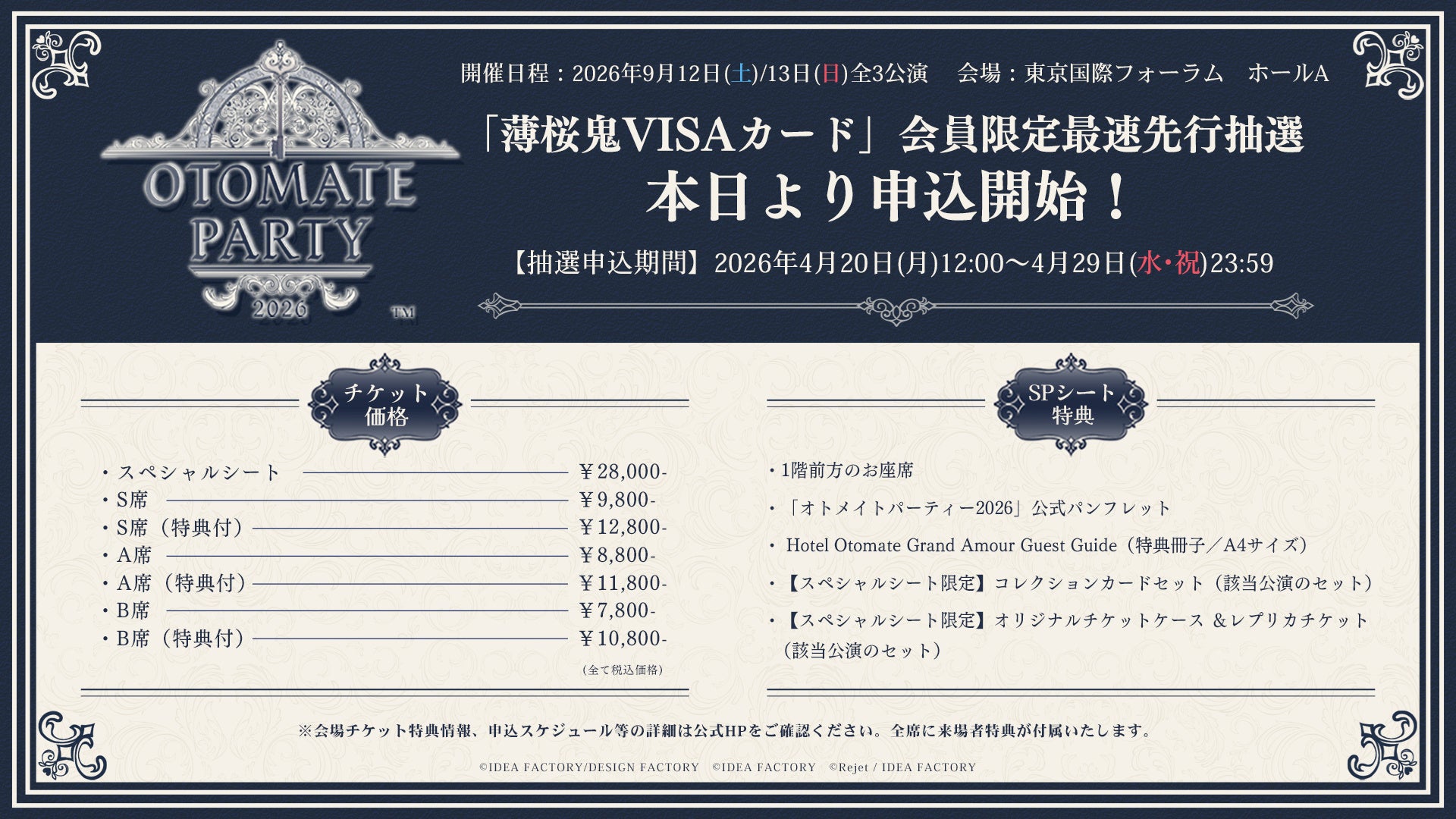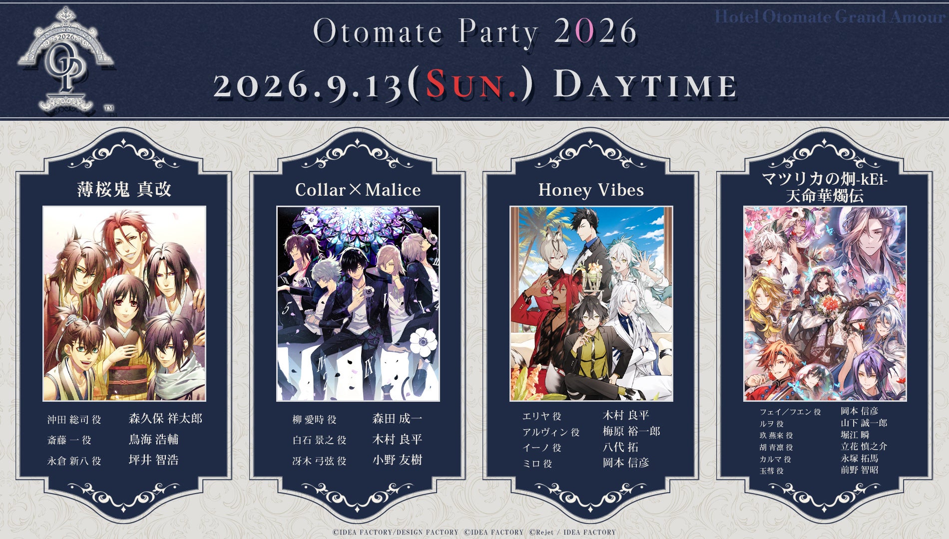 「オトメイトパーティー2026」9月に東京国際フォーラム ホールAにて開催決定!全3公演のラインナップ作品&豪華出演キャストを公開! 本日より「薄桜鬼VISAカード」会員限定申込抽選を受付開始!