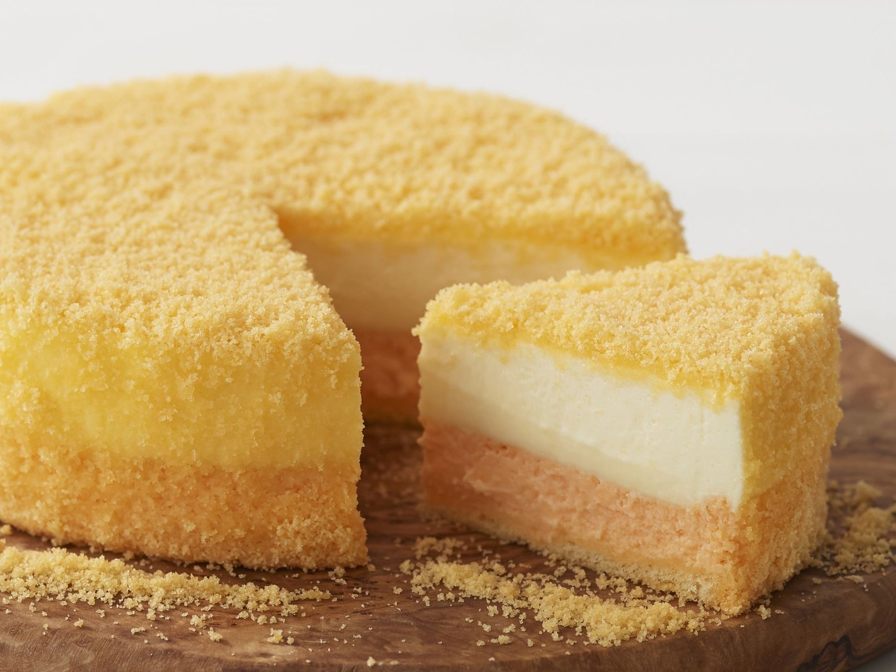 上層には、ミルク感が引き立つレアチーズ、下層にはしっかりとしたコクを感じるベイクドチーズが組み合わされ、口の中で一体となり、くちにした瞬間ふわっと広がる濃厚なミルク感と、とろけるようななめらかなくちどけの味わいが絶妙なバランスを生み出しています。発売以来の累計販売個数が約2,000万個に達し、北海道産牛乳のコクを最大限に活かしたチーズケーキとして開発されました。今回の催事では、季節限定のフレーバーも用意しております。